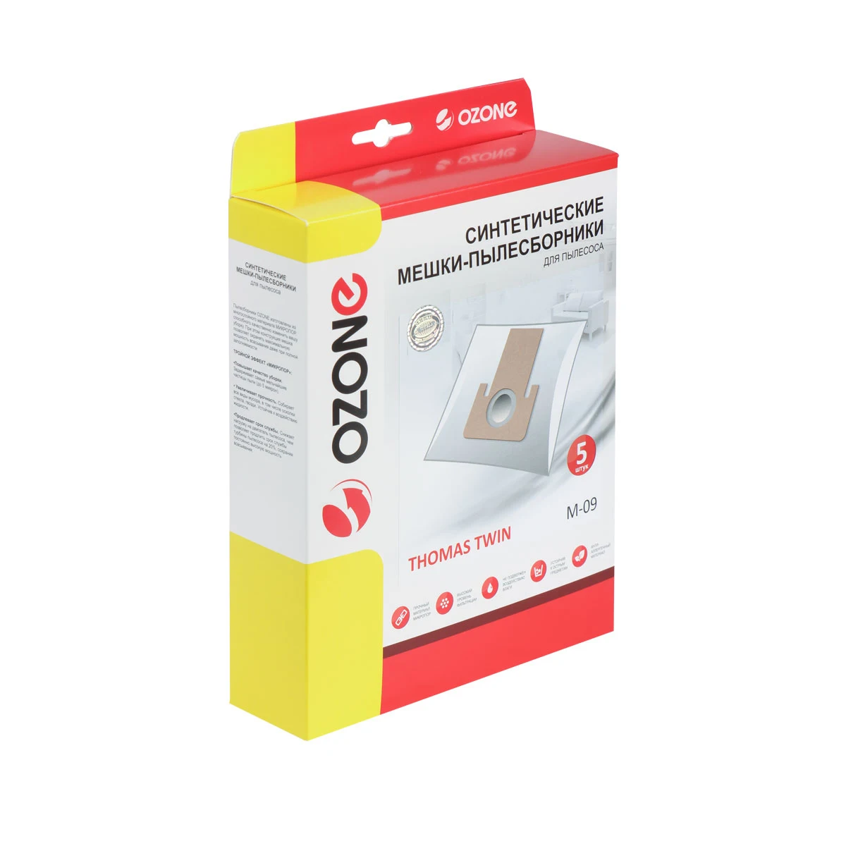 Мешки пылесборники для пылесоса THOMAS TWIN T1, T2, TT, 5 шт., синтетические, многослойные, бренд: OZONE, арт. M-09.