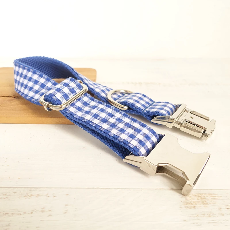 Описание Регулируемый ошейник для собак. Уникальный дизайн и воротник ручной работы. Для вашего щенка подойдут 5 различных размеров. Высококачественный материал и металлическая пряжка. Легко надевать и удобно носить. Вашему щенку понравится. Информация Материал: полиэфирное волокно Место происхождения: Китай (материк) Цвет: синий в клетку