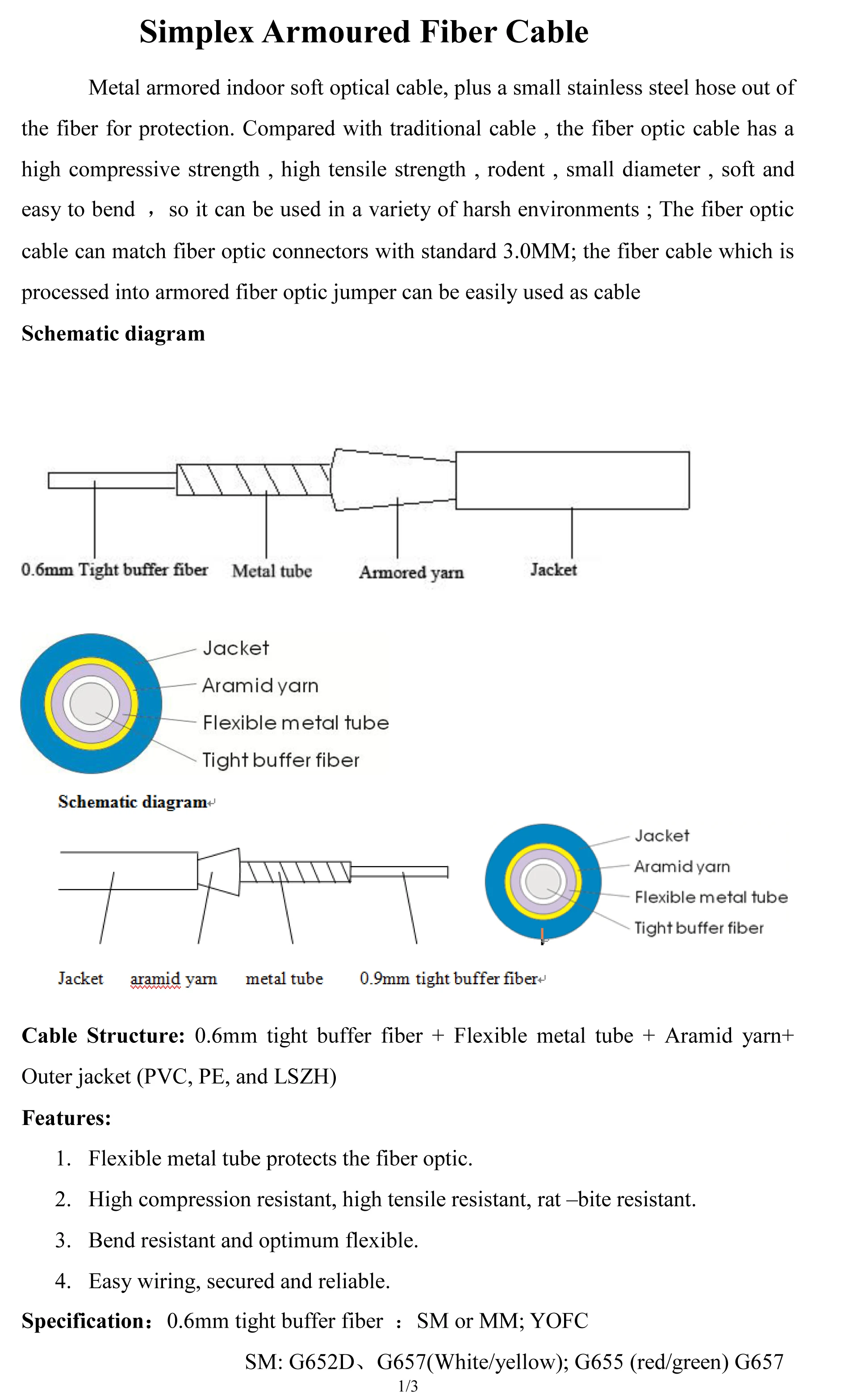 SMA905-SMA905 Керамика наконечник многорежимный трансивер OM2 50/125 м, 1 м, 2 м, 3 м, 5 м симплексный бронированный 3,0mm волоконно-оптический патч-корд соединительный кабель