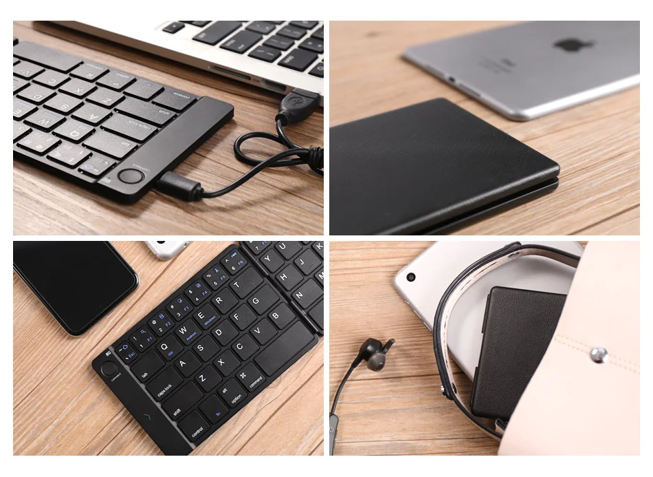 JLL-1 карманная Складная bluetooth-клавиатура идеально подходит для повышения производительности и подвижности. Стандартный размер обеспечивает точный, быстрый ввод текста, так же, как клавиатура рабочего стола, к которой вы привыкли. Тихие клавиши позволяют вам фокусироваться на вашей работе. Идеально подходит для путешествий и деловых поездок.