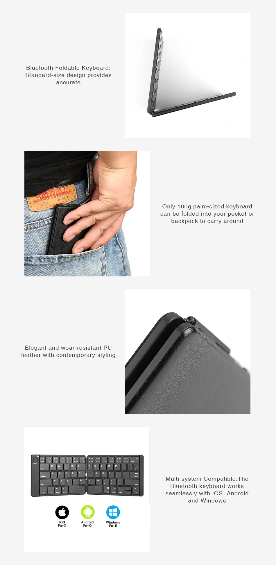 • Складная клавиатура Bluetooth: Стандартная конструкция обеспечивает точный, быстрый ввод текста, так же, как и клавиатура для рабочего стола, к которой вы привыкли. Тихие клавиши позволяют вам фокусироваться на вашей работе. Идеально подходит для путешествий и деловых поездок.