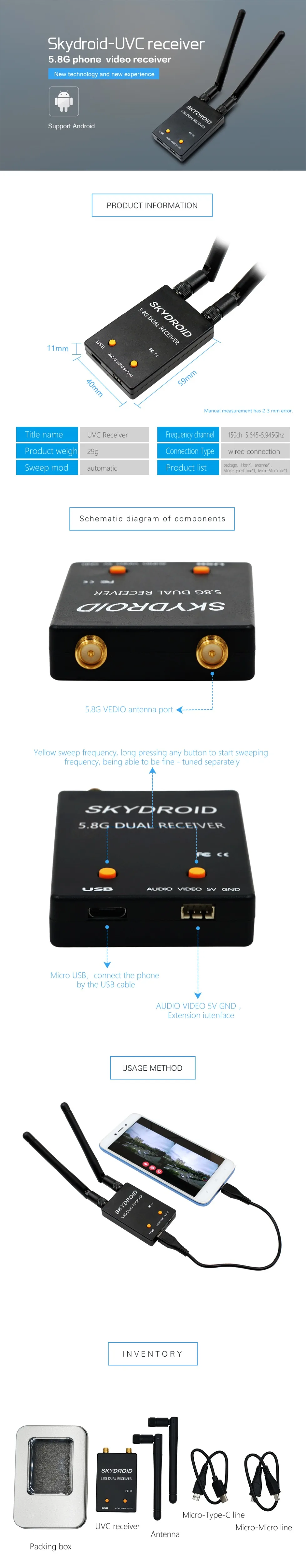 Обратите внимание: Этот приемник подходит только для телефона Android, который поддерживает UVC и убедитесь, что ваш телефон может работать с разъемом OTG.