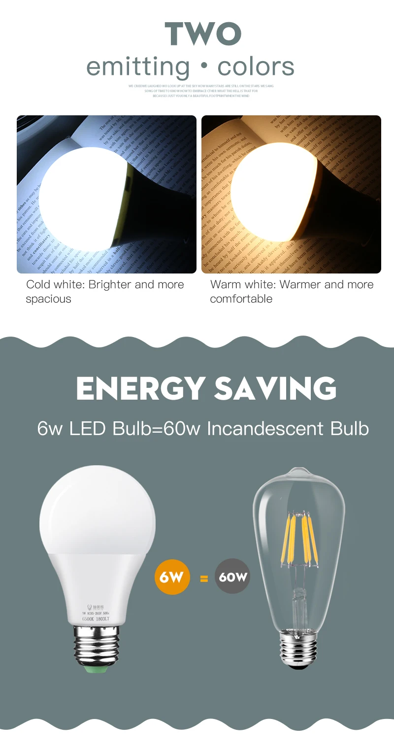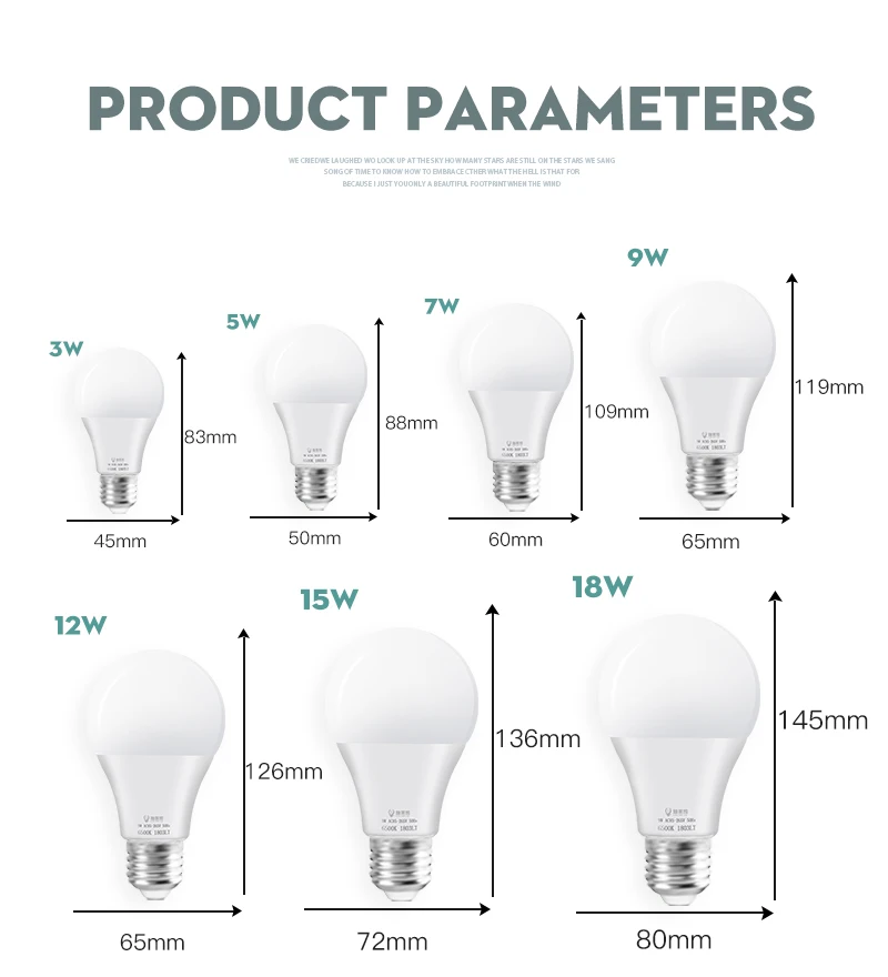 Светодиодная лампа E27 3 Вт 5 Вт 7 Вт 9 Вт 12 Вт 15 Вт 18 Вт, 110 В 220 В, алюминиевый пластиковый светодиодный светильник, лампочка, теплый белый холодный белый Светодиодный светильник для дома Напряжение: AC85-265V Светодиодный чип: SMD2835 Держатель лампы: E27 Материал: Поликарбонат Цветовая температура: 3000/6500K, CRI: ≤ 80 Светоотдача: ≤ 95 Гарантия: 1 год Крепление: 1.AC85-265V, универсальный. 2. Полная мощность! Высокая яркость 3. Драйвер IC, без мерцания, не легко выгореть, больше испанцев 4. Алюминий в пластиковом корпусе, хороший теплоотвод 5. Угол луча 270 градусов.