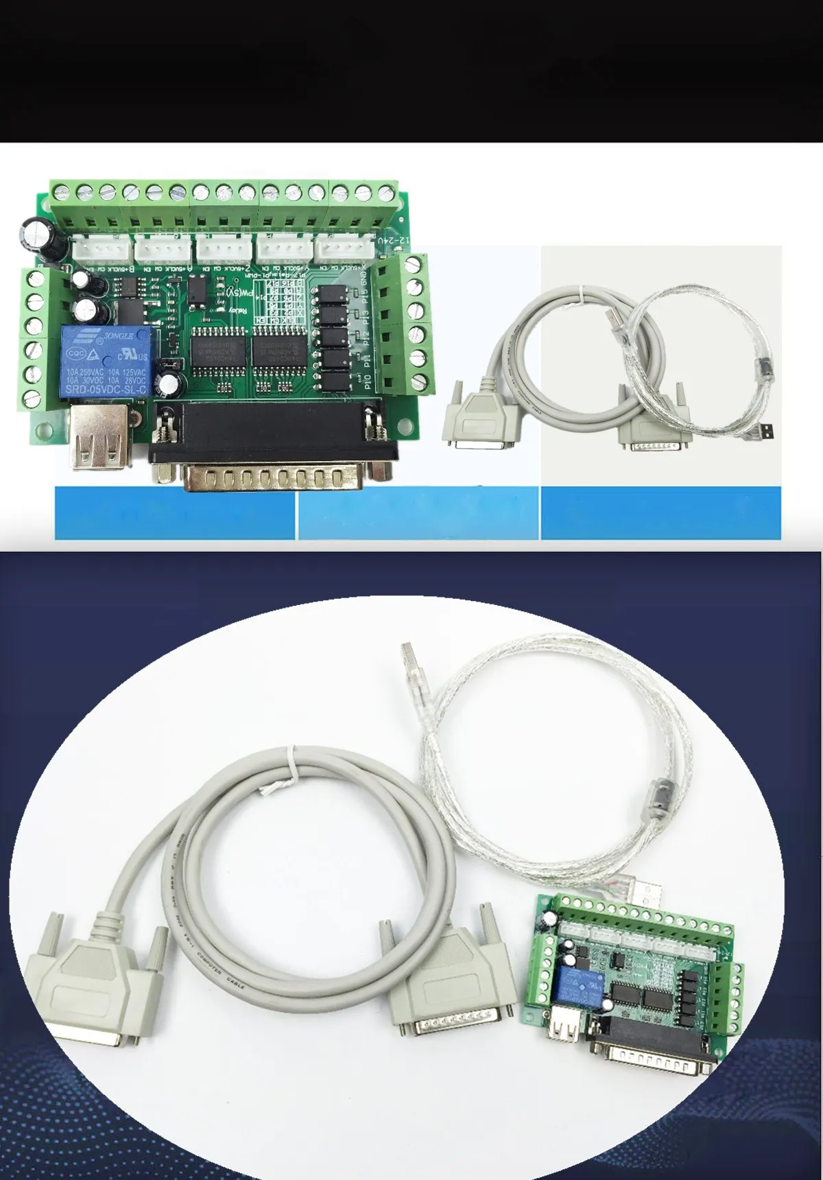 1X 5 Axis Breakout Board 1X USB cable 1 x DB25 parallel cable