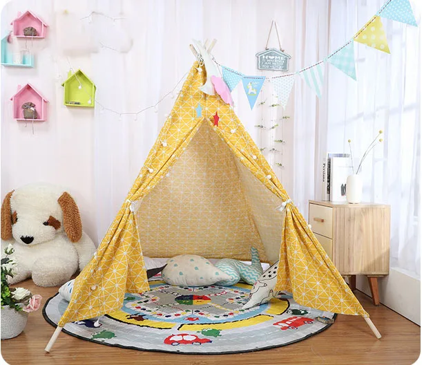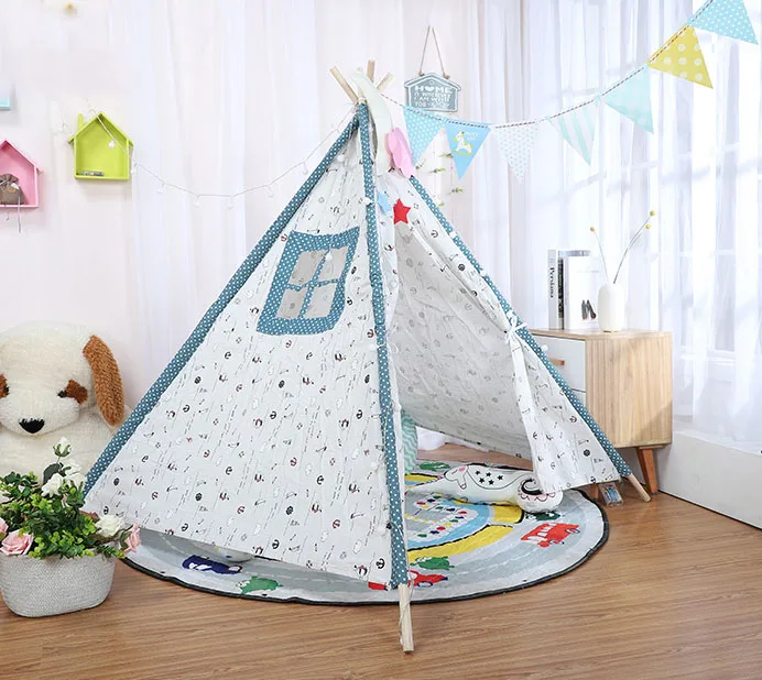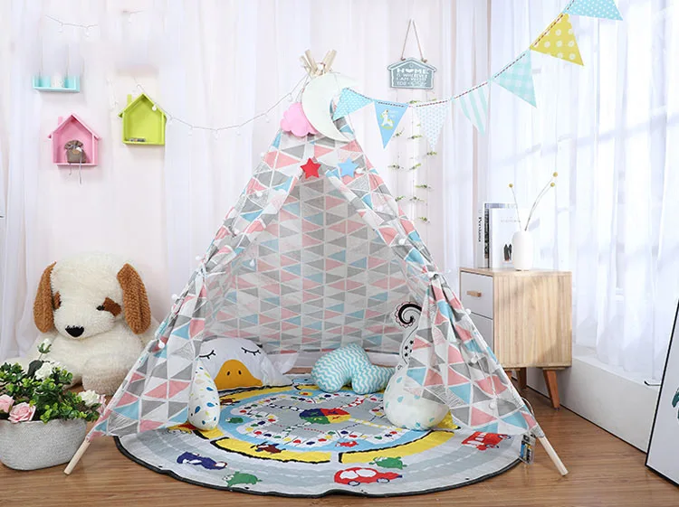 1,35 м большая палатка для прорезывания зубов, хлопок, холст, Tipi House, детский уличный игровой домик, игровой домик, индийский треугольный тент, декор для комнаты