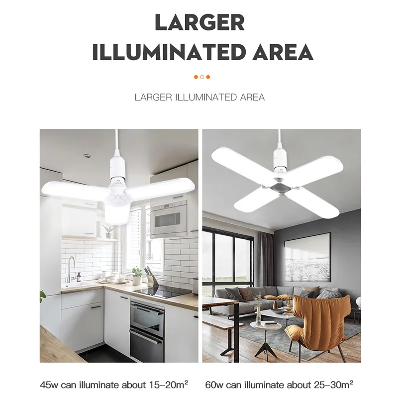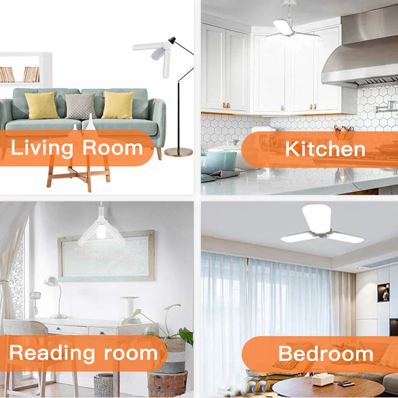 -Энергосбережение, длительный срок службы, не мерцает, не темнеет -Хорошая теплоотдача: высококачественный алюминиевый сплав, хорошая теплоотдача -Термостойкость, коррозионная стойкость и полое строение, охлаждение -Производительность значительно улучшается, и срок службы лампы продлевается -Деформируемая конструкция: Каждая головка лампы может быть отрегулирована. Максимальный угол луча может достигать 360 градусов для удовлетворения потребностей освещения в различных средах. -Нет инструментов, Нет проводки, нет необходимости в профессиональном электрике, просто ввинтите его в среднюю -Широкий спектр применения: гаражи, склады, подвальные помещения, высотные заводы, мастерские, ogistics центры, выставочные залы, стадионы, горнодобывающая промышленность, платные станции, супермаркеты.