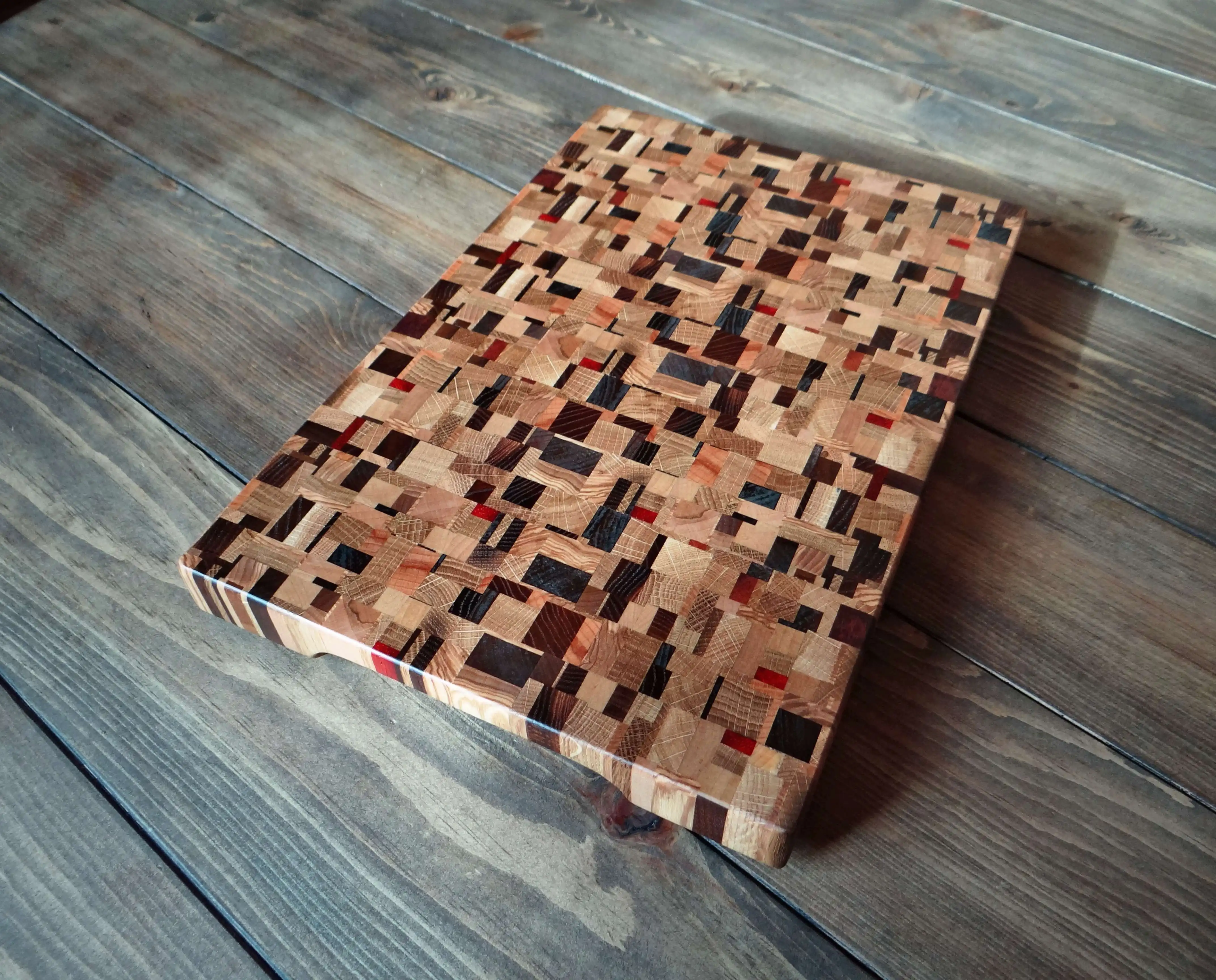 1.Торцевая поверхность древесины более прочная и долговечная.2. при использовании розеток ножи дольше остаются острыми и требуют более редкой заточки.3.Торцевая доска менее подвержена заражению бактериями, поскольку волокна после разреза «смыкаются», а покровное масло защищает от проникновения бактерий внутрь волокон.4. Для увеличения срока службы, защиты от бактерий и придания красивого внешнего вида доски обработаны смесью пищевого минерального масла и пчелиного воска.Минеральное масло не имеет вкуса, запаха и запаха воска мёдом.