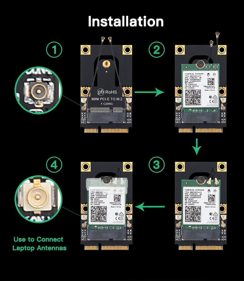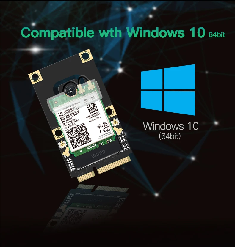 Описание: Модель: Wi-Fi 6 MPE-AX3000H; Интерфейс: Mini PCI-E; Двухдиапазонный: 2,4 ГГц/5 ГГц (160 МГц); Скорость до 2400 Мбит/с (маршрутизатор должен быть на 160 МГц)(802.11ax); Поддержка 802.11ax/ac; Поддержка Bluetooth 5,0; Поддержка MU-MIMO и OFDMA; Поддержка Windows 10 64bit/Linux; Совместимость с: Он может использоваться на Samsung/Dell/Sony/ACER/ISUS/MSI/Clevo/Terransforce/Hasee и т. Д. Не поддерживает Ноутбук IBM/Thinkpad/lenovo/hp. (Но для ноутбука HP/Lenovo 2016 выше, он может поддерживать.)