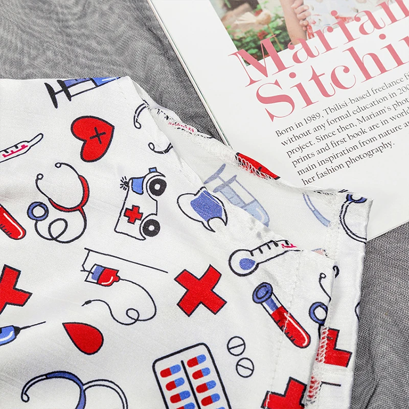 Сексуальный пижамный комплект без рукавов с v-образным вырезом, пижама с принтом Красного Креста, майка + медицинские принадлежности, шорты с рисунком, атласные пижамы для женщин