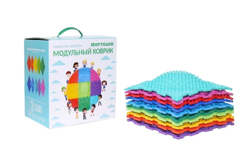 Набор "Ассорти" состоит из 10 модульных ковриков «ОРТОДОН». Сочетание разнопрофильных и разножёстких модулей позволяет проводить упражнения на них с максимальной пользой. Богатая цветовая палитра ковриков поможет ребёнку в изучении разнообразия цветов.