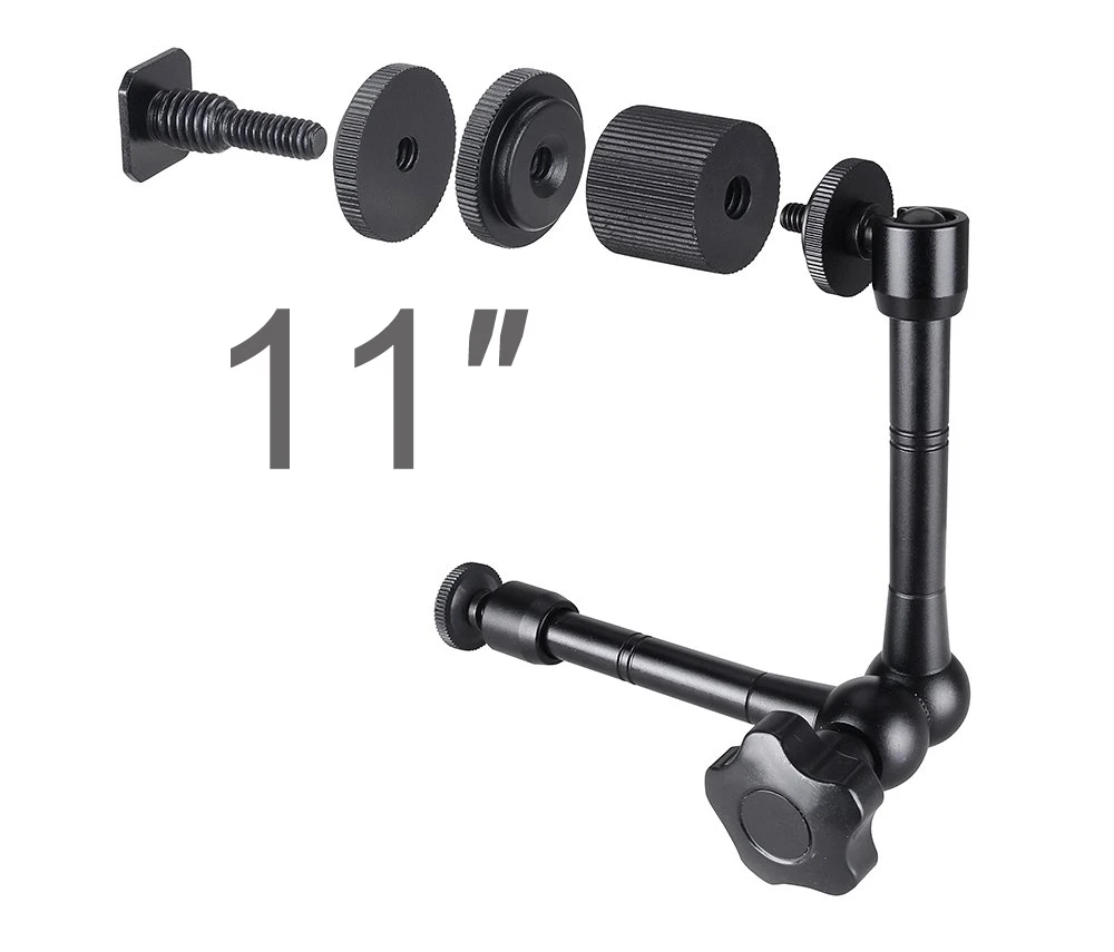 MAGIC ARM-одна сторона имеет 1/4 "винт, соединяющийся с монитором, светодиодный светильник или другие аксессуары. Другая сторона-это квадратное крепление для горячего башмака, которое можно легко установить на камеру DSLR. И это крепление для горячего башмака является съемным, чтобы стать еще одним винтом 1/4 ", поэтому оба конца-винт 1/4", который вы можете подключить к различному оборудованию.