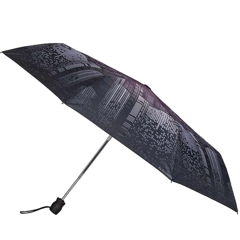 Женский зонт-автомат торговой марки ELEGANZZA. Купол: 100% полиэстер, эпонж. Материал каркаса: сталь + фибергласс. Материал ручки: пластик. Длина изделия - 29 см. Диаметр купола - 104 см.