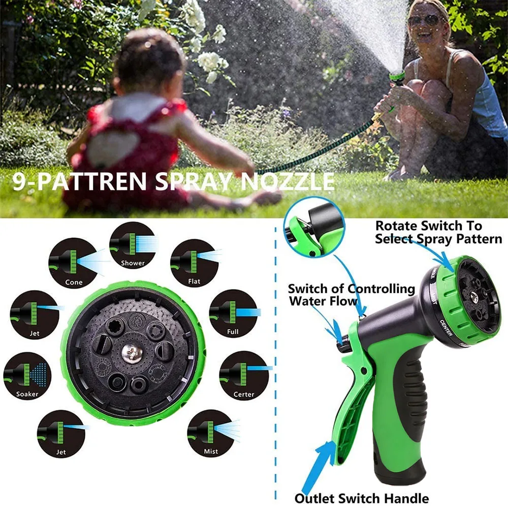8 моделей распылителя в комплекте, полный, туман, струя, душ, плоский, центр, конус, выберите оптимальный режим, который вам нужен Поставляется с 8-узор форсунки Наш питомник, расширяющийся шланг обеспечивает умные решения, чтобы удовлетворить все ваши полива и потребностями в очистке и очистки областей применения: сад, двор, этажность дома, газон, домашних животных, бассейн, автомойка и т. Д. Кроме того, шланг для воды хорошего качества может служить идеальным подарком для всех садовников.