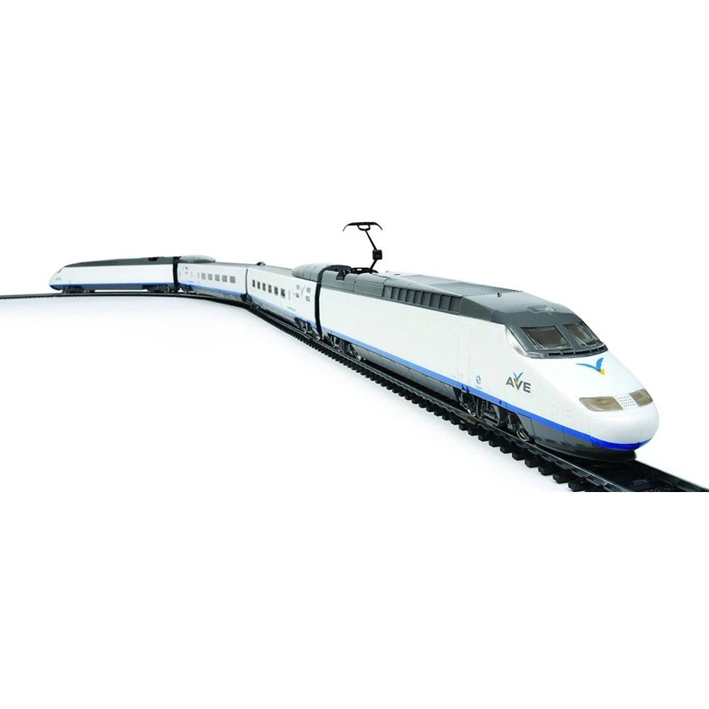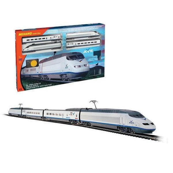 Железная дорога AVE — это миниатюрный скоростной состав. Обтекаемые линии, белоснежный цвет, быстрое движение поезда делают его похожим на механическую птицу, которая летит по рельсам, будто не касаясь их. Это стремительное изящество вписано в рамки рельсового овала, но при желании железнодорожное полотно можно увеличить, ведь все элементы железных дорог MEHANO совместимы друг с другом.