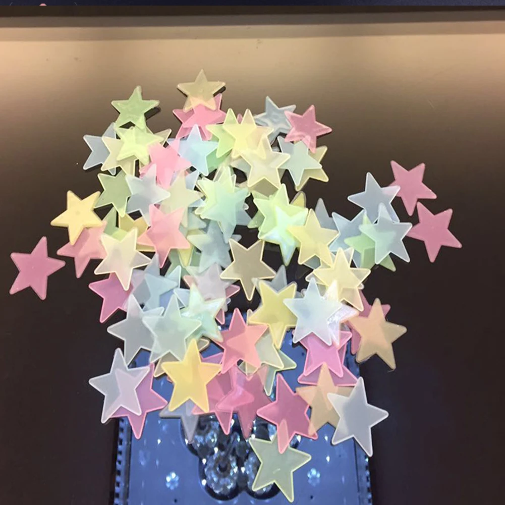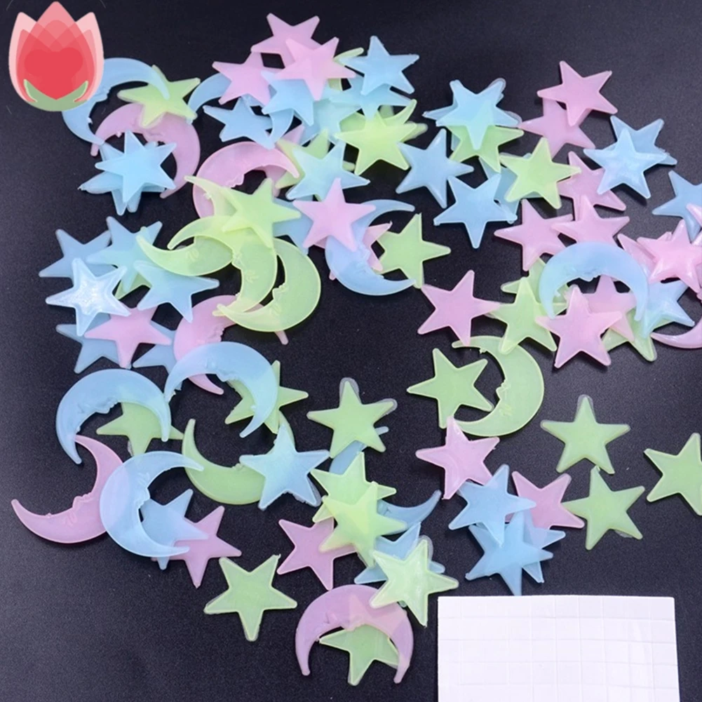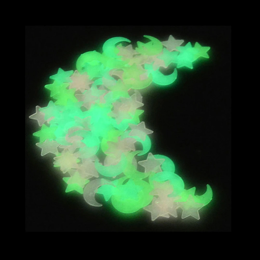 100 шт., светящиеся настенные наклейки со звездой луной, для спальни, для детской комнаты, для потолка, флуоресцентные наклейки, наклейки для украшения дома