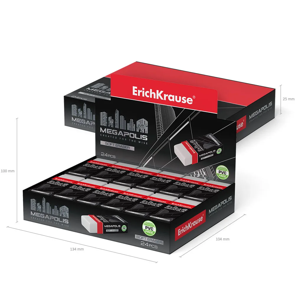 Мягкий ластик классической формы из современного экологически чистого и гипоаллергенного материала термопластичной резины (TPR) с пониженным образованием крошек (Dust free) в фирменной картонной обертке.