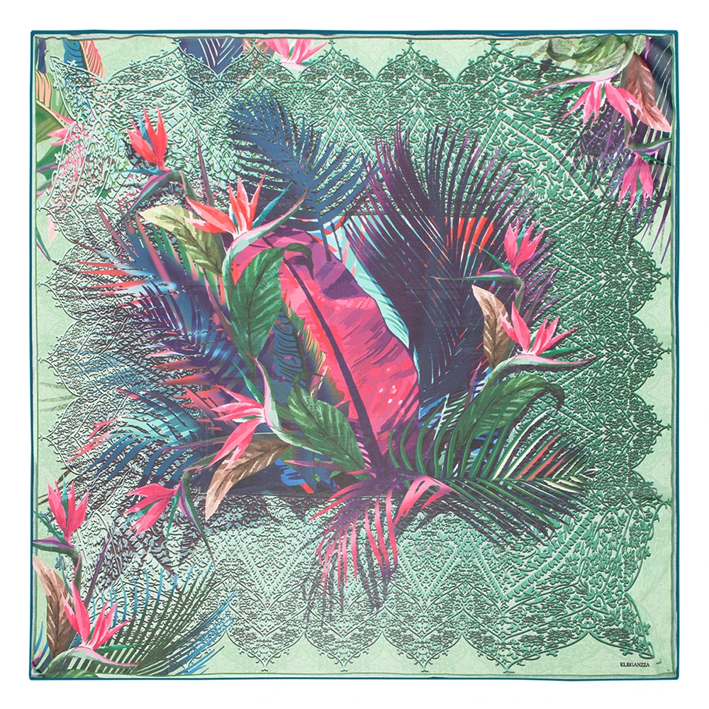 Платок торговой марки ELEGANZZA. Состав: 100% шелк, жоржет. Тип подгибки: ручная подгибка. Размер: 110х110 см.