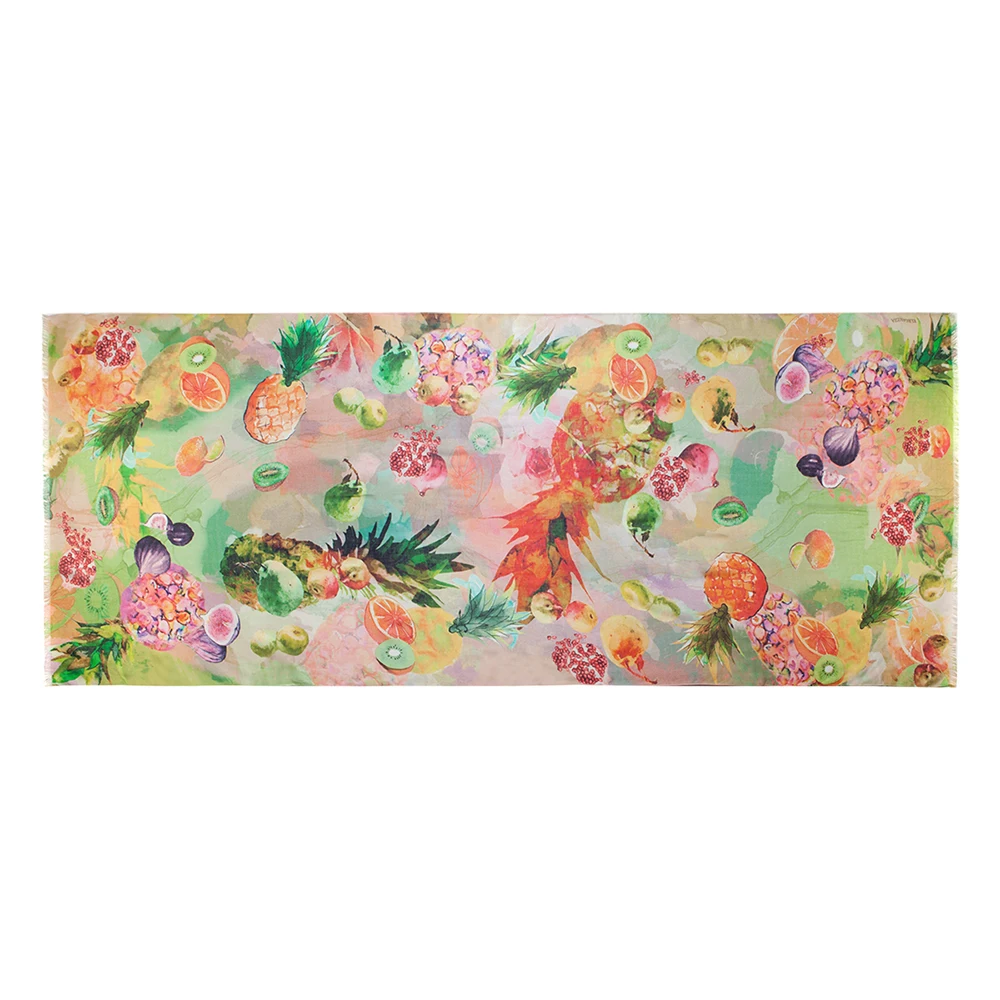 РАЗМЕР 70х180 Страна производитель ИТАЛИЯ Пол женский Материал 50% шелк, 30% хлопок, 20% бамбук Цвет Салатовый, зеленый, розовый, фиолетовыйВНЕШНИЙ ВИД ТОВАРА