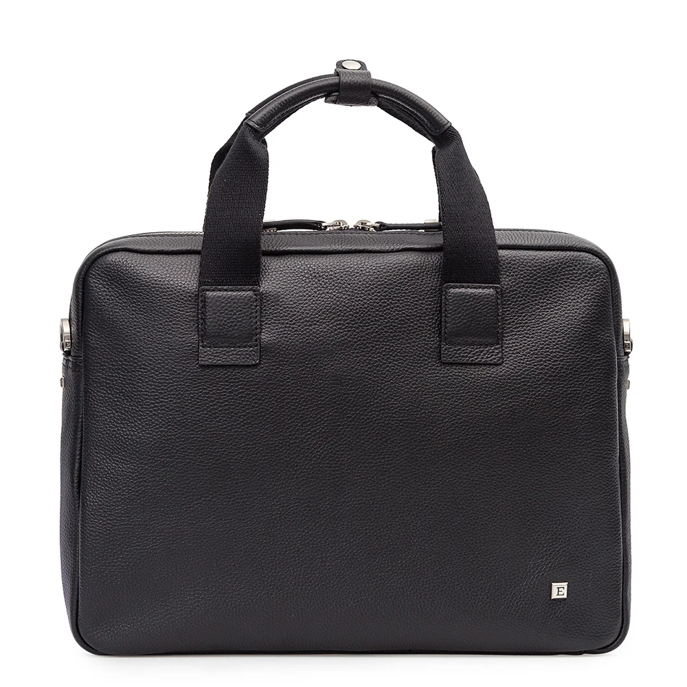 Мужская сумка торговой марки ELEGANZZA из натуральной кожи. Сумка закрывается на металлическую молнию. Внутри отделения есть карман на молнии, 4 отделения для кредитных карточек, открытый карман и 2 держателя для ручек. На передней стенке есть дополнительное отделение на металлической молнии, внутри которого есть отделение для планшета. Модель вмещает формат А4. Высота ручек - 12 см. Длина наплечного ремня - 150 см.