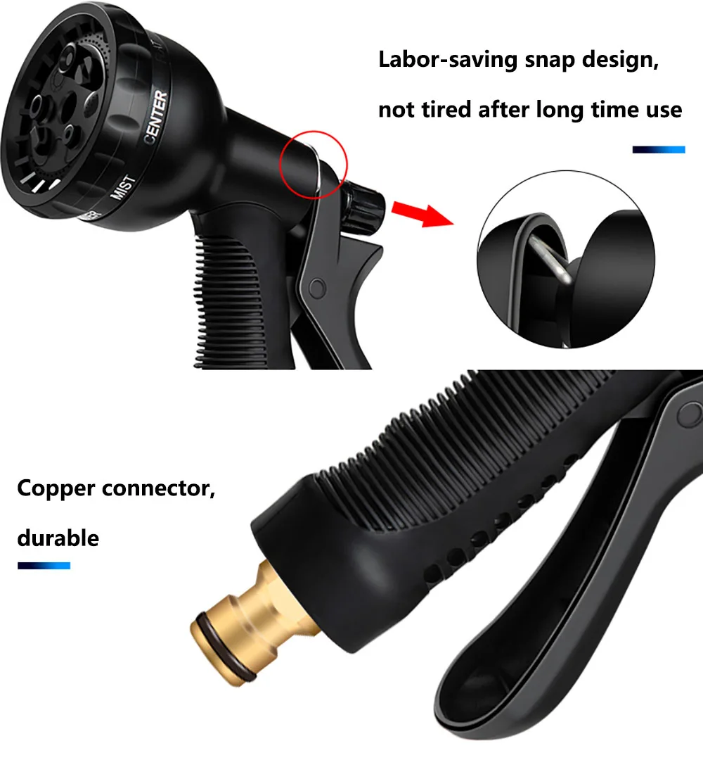 Фитинги из цельной латуни Латунный соединитель не сломается, не трескается, не протекает или не подвержен коррозии, он может выдерживать температуру от-5 ℃ до 98 ℃. Латунный клапан в конце позволяет контролировать поток воды более эффективно и экономит ваши поездки в кран. 8 моделей распылителя в комплекте, полный, туман, струя, душ, плоский, центр, конус, выберите оптимальный режим, который вам нужен Расширяющийся 3X и самый сильный латексный сердечник Выдвижной и расширяемый, простота использования и хранения. Быстро расширяется до 3 раз, пространство эффективно для поддержки нескольких целей.