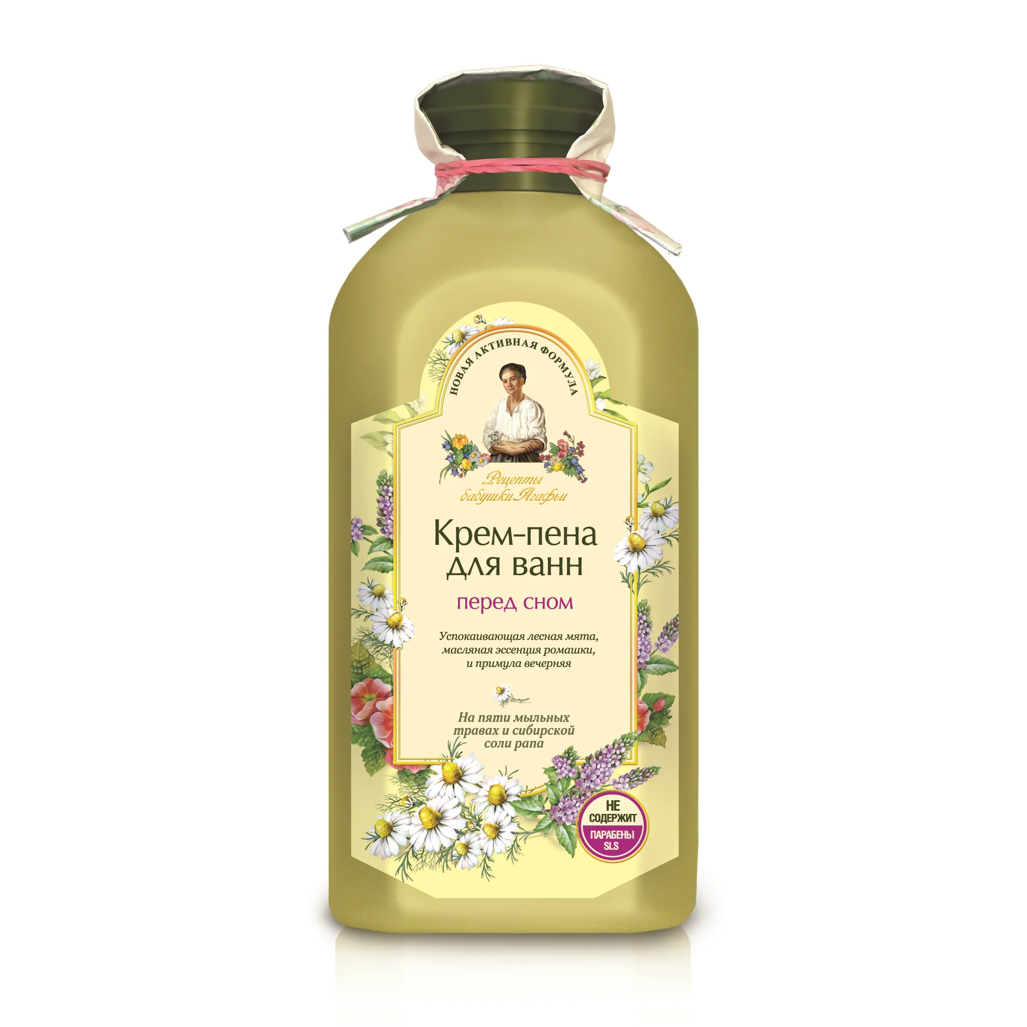 Благодаря успокаивающим ароматам мяты лесной, ромашки и примулы вечерней крем-пена снимает ощущение усталости и улучшает сон. «Соль сибирская водицу любую полезной для купания сделает, а ежели травушек туда добрых добавишь – кожа твоя краше яблочка наливного станет». Из советов Агафьи Ермаковой.