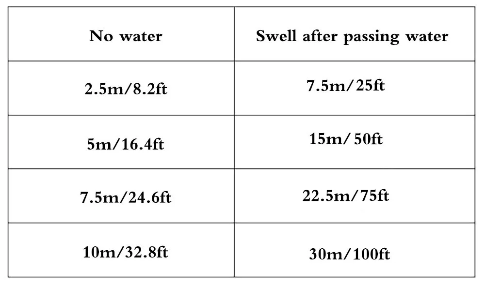 Размер: (25 футов: до 7,5 метров после закачки воды) (50 футов: до 15 метров после закачки воды) (75 футов: до 22,5 метров после закачки воды) (100 футов-30 метров после закачки воды) (максимальная длина закачки воды)