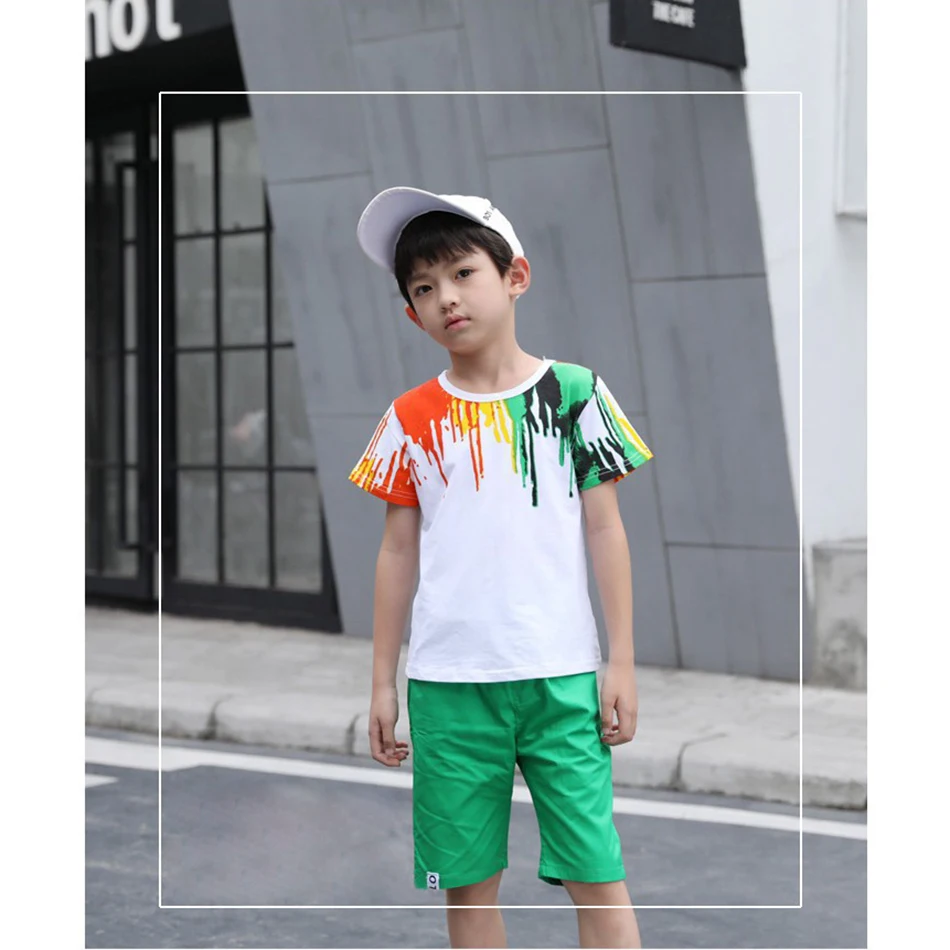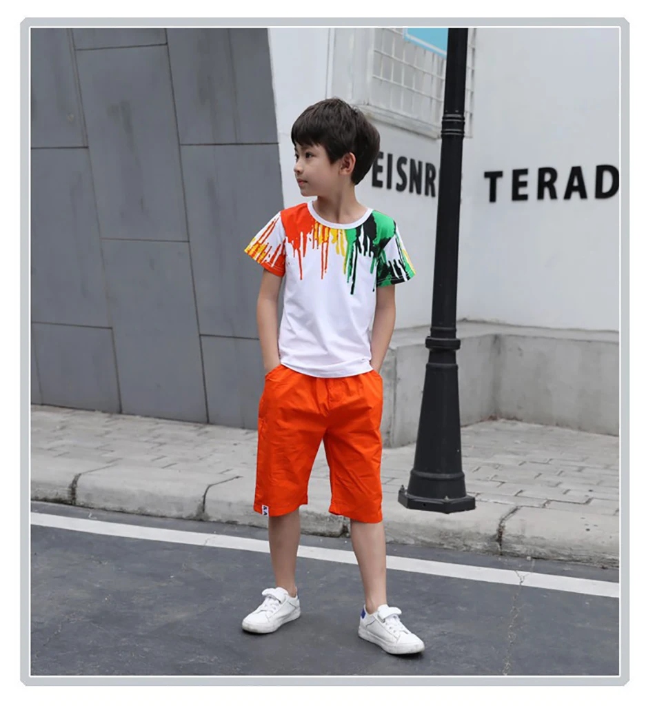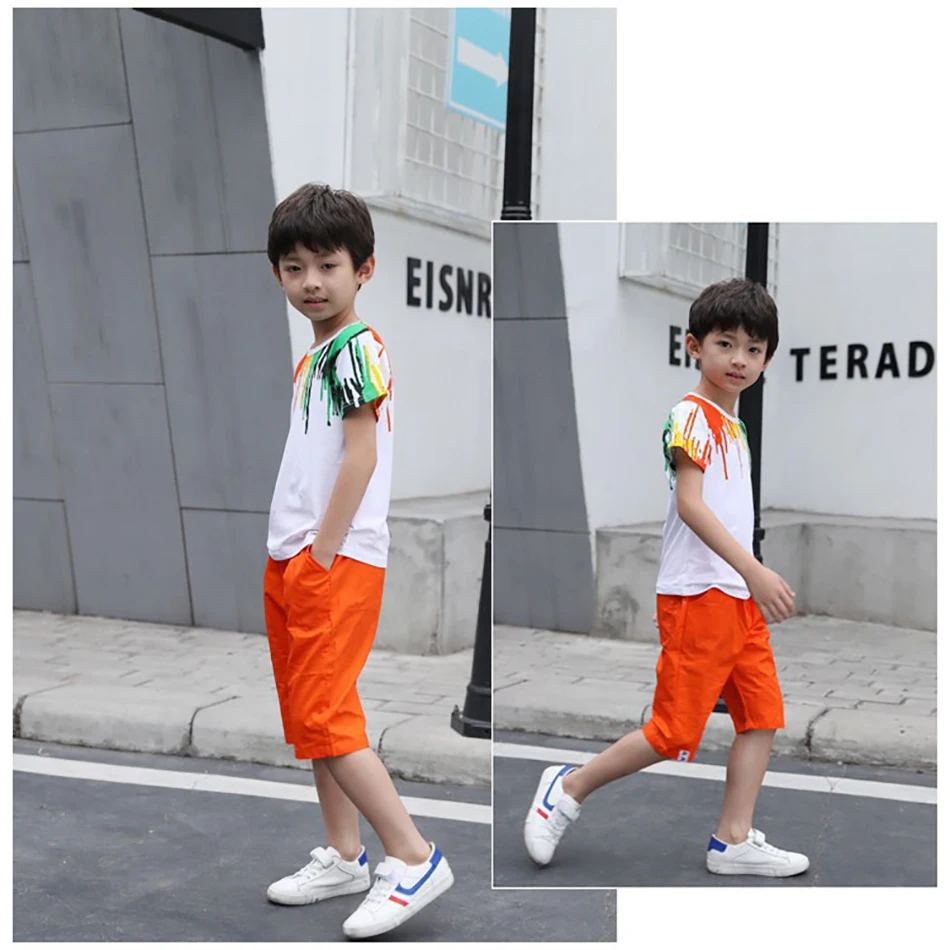Комплекты для мальчиков; Коллекция 2020 года; Сезон лето; Хлопковый спортивный костюм для мальчиков-подростков; От 3 до 10 лет; Детская одежда с короткими рукавами; Рубашка; Шорты