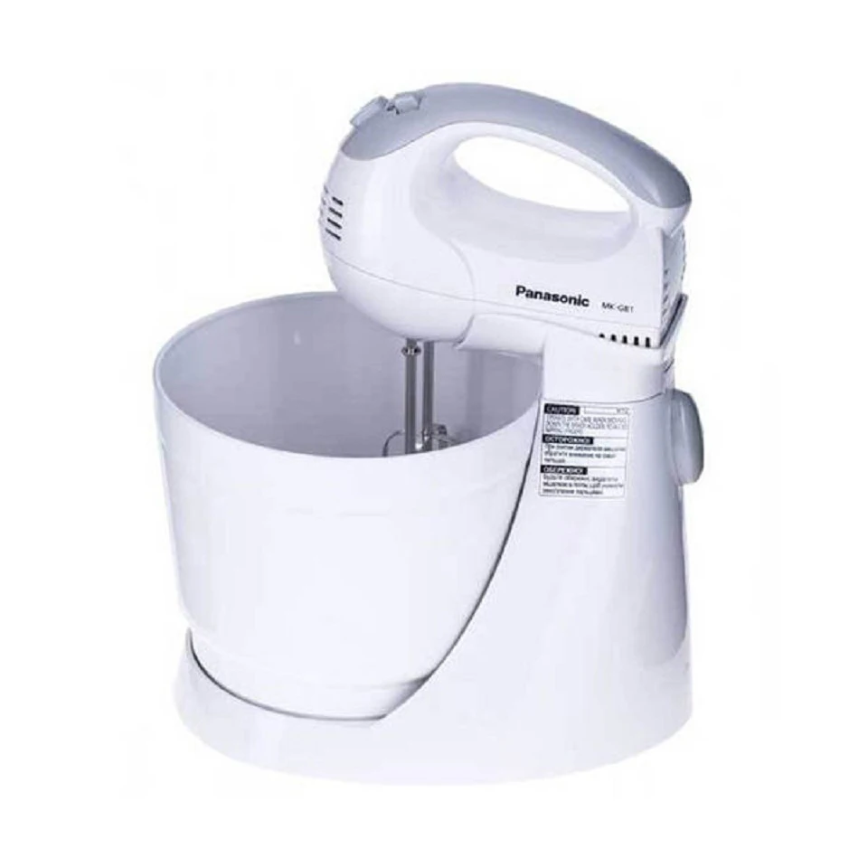 Описание Миксер Panasonic MK-GB1WTQМиксер Panasonic MK-GB1WTQ в симпатичном корпусе из прочного белого пластика. В его трехлитровой чаше можно готовить омлеты, кремы и легко замесить нежное легкое тесто для бисквита. Мощности 200 Вт достаточно для этих видов работ. Просто установите одну из пяти скоростей. Подставка с вращающейся чашей поможет выбрать наиболее удобное положение для замешивания. Один из важнейших аргументов при выборе бытовой техники -это, конечно, цена. Миксер находится в том диапазоне стоимости, который позволяет не переживать о семейном бюджете и вместе с тем дает гарантию покупки отличного фирменного товара.