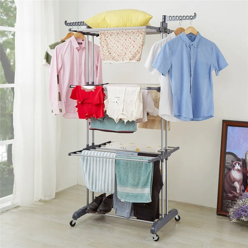 Если вы хотите купить сушилку для одежды, чтобы украсить ваш дом, вы обнаружите, что здесь находится подходящее место. Ну, мы предложим вам эту трехслойную портативную практичную сушилку для одежды. Он поставляется с изысканным дизайном и элегантным внешним видом. Эта сушилка для одежды абсолютно Идеальная конструкция отлично сочетается с разнообразной одеждой. Он изготовлен из высококачественного материала, что делает его прочным и надежным в использовании. Отлично подходит для подвешивания пальто, куртки, свитера, рубашки и так далее. Благодаря 3-слойному дизайну вы сможете сэкономить много места! Вы должны иметь один по разумной цене! Приходите и заказывайте прямо сейчас!