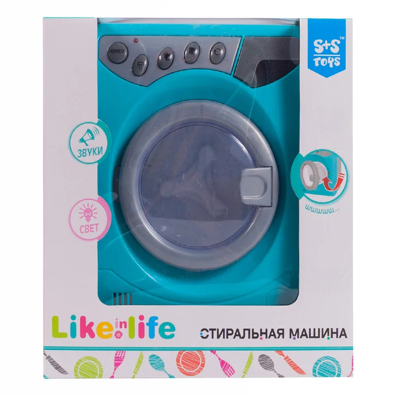 Отличная игрушка для юной хозяюшки ! Игровой набор познакомит ребенка с принципами работы настоящих бытовых приборов и научит правильно обращаться с ними. Игрушечная стиральная машинка "Бирюза" познакомит ребёнка с первыми предметами бытовой техники. Дверка изделия открывается и закрывается вручную. Во время игры стиральная машинка воспроизводит реалистичные звуки стирки, барабан вращается, а маленький индикатор загорается красным цветом.