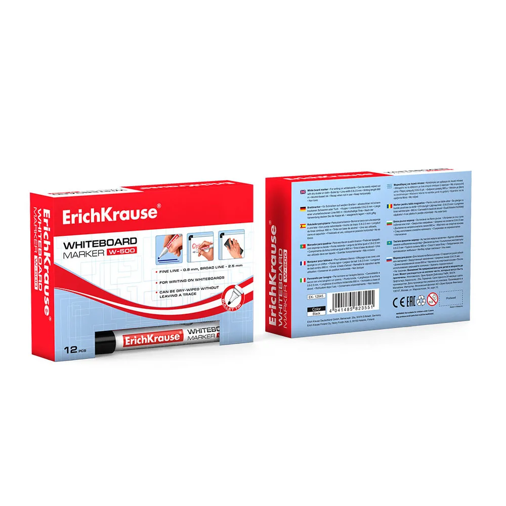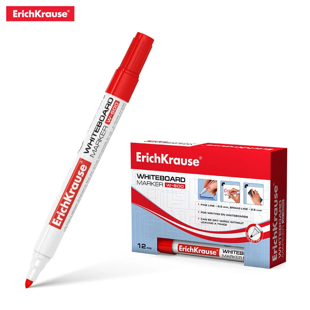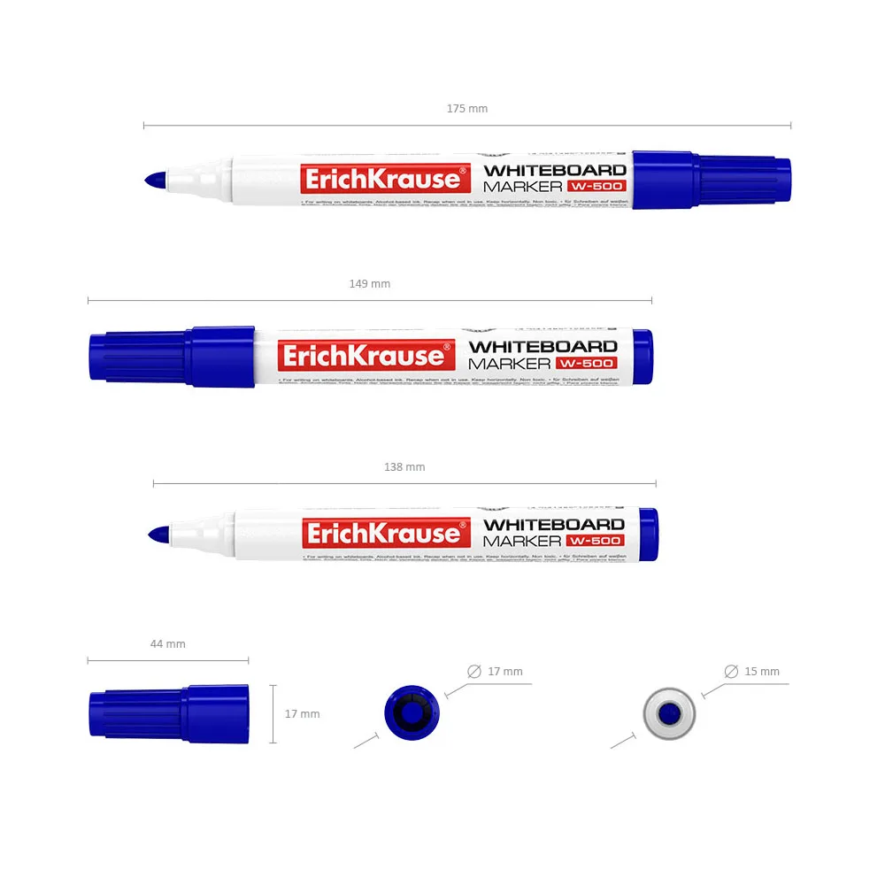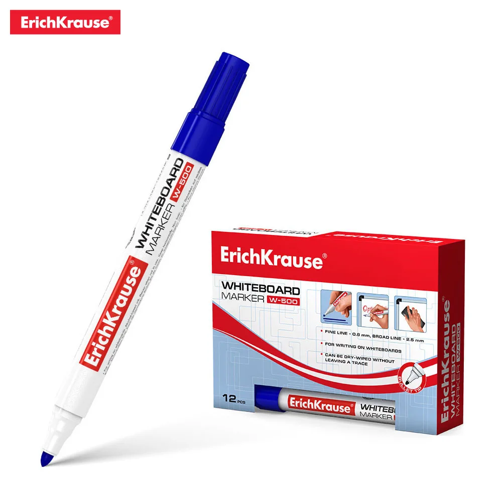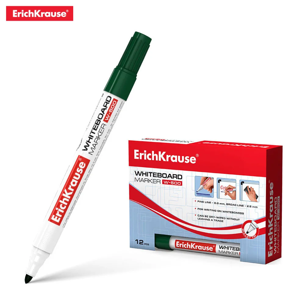 Маркер для письма и сухого стирания на досках. Очень практичный, незаменим во время проведения презентаций, совещаний и пр. Имеет круглую форму корпуса, цветной колпачок, соответствующий цвету чернил. Наконечник пулевидной формы устойчив к повреждению и истиранию. Ширина письма – 0.8-2.2 мм. Чернила на спиртовой основе, быстро высыхают после нанесения. Надписи легко стираются сухой тканью, не оставляя следов. Нетоксичные. Не содержат ксилол, толуол. Хранить горизонтально. Срок годности 5 лет.