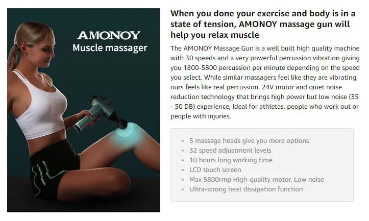 Почему мышцы болят? Что может сделать массажный пистолет AMONOY, чтобы облегчить боль в мышцах? AMONOY massage gun-это портативное устройство, которое применяет импульсы концентрированного давления глубоко в мышечную ткань. Эта форма массажа глубоких тканей может работать с узлами и напряжением из мышц, улучшая кровоток и быстро увеличивая диапазон движения. При правильном использовании, массажный пистолет AMONOY может сократить время восстановления, уменьшая боль, напряжение и болезненность, связанные с напряженными упражнениями.