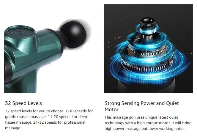 * Пистолет-массажер для глубоких тканей --- лучший массажный пистолет AMONOY, который помогает облегчить мышечные боли, болезненность и жесткость, способствует кровотоку и избавлению молочной кислоты и помогает ускорить прогревание и восстановление, ручной массажный пистолет помогает быстрее восстановить тело, Массажный пистолет для спортсменов возьмите ваш перкуссионный массажер в тренажерный зал или спортивный клуб, удобное управление одной рукой с удобной рукояткой, быстро снимает мышечную усталость и боль, ускоряет восстановление. * 32 настройки скорости и 5 массажных головок --- по сравнению с другими брендами, мы модернизировали скорость массажа до 32 уровней. Это позволяет регулировать скорость, обеспечивая более подходящий и удобный массаж. Мы устанавливаем Наш Массажный пистолет max 5800rmp, обеспечивая более мощный массаж глубокого проникновения от головы до ног. Есть 5 различных функций массажных головок. Каждая головка расслабляет различные части тела и обеспечивает адресное лечение для каждой группы мышц, чтобы удовлетворить все ваши потребности в массаже. * Очень тихий и простой в использовании --- с массажной головкой и плотно Соединенным массажным телом обеспечивает минимальный уровень шума во время использования. Он поставляется со встроенным двигателем с высоким крутящим моментом и новейшей технологией шумоподавления с беговым шумом от 35 до 55 дБ. Сенсорный ЖК-экран позволяет легко видеть и контролировать уровни скорости и состояние питания. Функция рассеивания тепла дает мышечный массажный пистолет более длительный срок службы, охлаждая систему и предотвращая ее перегрев. * Беспроводной перезаряжаемый массажный пистолет --- беспроводной массажер оснащен 3600 мАч высококачественной литиевой батареей, которая может продолжать работать около 8 -10 часов после полной зарядки. Пистолет-массажер с ЖК-дисплеем с сенсорным экраном показывает уровень скорости и индикатор питания, поэтому вам не придется беспокоиться о отключении электроэнергии. В комплект входит симпатичный чехол для переноски, поэтому вы можете легко взять пистолет для массажа мышц в любом месте. * Идеальный подарок для ежедневного массажа-многие профессиональные спортсмены используют массажные пистолеты. Им нравится, потому что они просты в использовании и работают довольно хорошо. Этот массажер подарит Глубокое расслабление и здоровье. Массажный пистолет-это тип массажера для шеи и спины, который может действительно использоваться кем угодно. Глубокий тканевый массажер поставляется со всеми инструментами, которые вам нужны, чтобы получить лучший и самый мощный массаж. Если вы ищете подарок для своих любимых, лучший массажный пистолет станет вашим лучшим выбором. * Содержимое посылка (чехол в комплекте) 1 * массажный пистолет 1 * круглая голова 1 * конусности головки 1 * с плоской головкой 1 * форма головы 'U' 1 * Лопата в форме головы 1 * AC Зарядное устройство