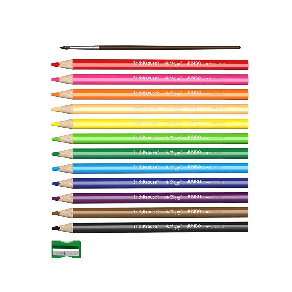 Эргономичные акварельные цветные карандаши с утолщенным корпусом Jumbo из отборной древесины с суперярким грифелем 5мм для детей младшего возраста. После нанесения на бумагу след от карандаша может быть использован для создания акварельного эффекта при помощи воды и кисточки, входящей в комплект. При рисовании карандаш не царапает бумагу, грифель не крошится. Специальная пропитка древесины и сплошная проклейка грифеля обеспечивают высокую ударопрочность. Мягкая древесина и идеальная центровка грифеля гарантируют легкую заточку с экономным расходом карандаша. Европейский сертификат качества (СЕ) гарантирует отсутствие в составе токсичных веществ.