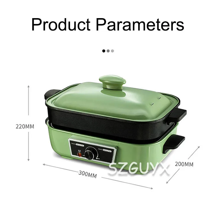 Название продукта: многофункциональная кастрюля Модель: LZW-1901A Номинальное напряжение: 220 В/50 Гц Номинальное напряжение: 1400 Вт Размер продукта: 220*300*200 мм