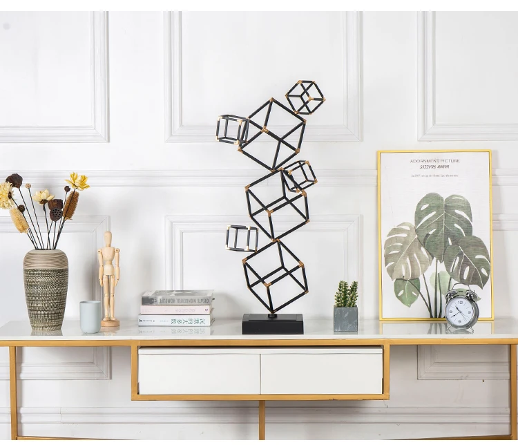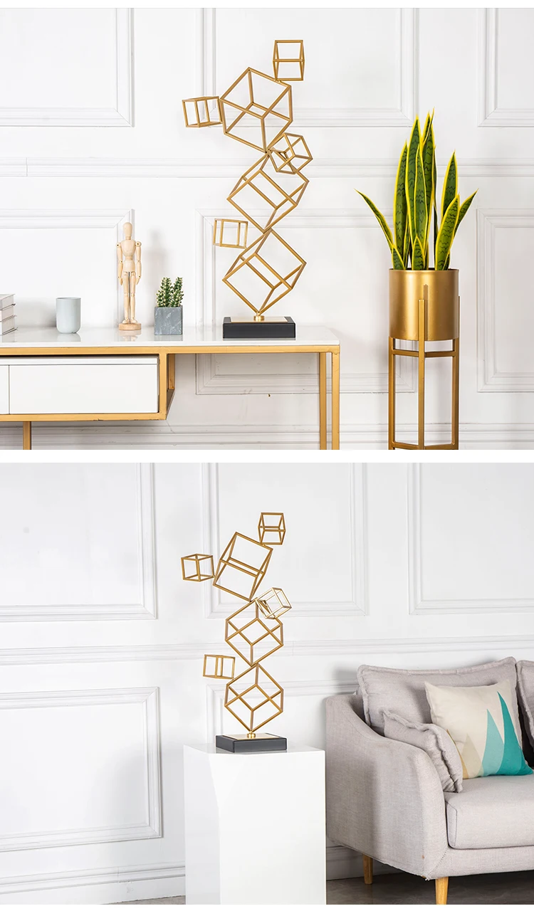 Современный набор золотой черный металлический кубик фигурки Большой 70 см домашний декор мраморные статуи геометрические скульптурные аксессуары украшения