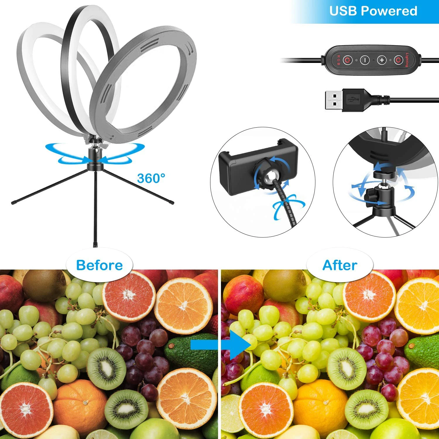 【 14 виды красочные светильник ing】 10 дюймовый Диммируемый кольцевой светильник стенд с 16 светильник ing режимов: белый, синий, желтый, теплый белый, красный, зеленый, синий, желтый, зеленый, фиолетовый, светильник, синий, 7 цветов с 10 уровнями яркости для вас. Светодиодный кольцевой светильник для селфи идеально подходит для видео на youtube, создания видео или потоковой передачи в ночное время. Также подходит для селфи, макияжа, YouTube, фотосъемки, чтобы соответствовать эффекту фильтра, который вам нужен. 【 Держатель для телефона с поворотом на 360 ° 】 кольцевой держатель для телефона RGB подходит для большинства смартфонов с чехлом или без него, например, для iPhone 11, XS / XS Max / XR/IPhone X / 8 / 7 plus / 6 S, Huawei, VIVO, Samsung, S8 / Note8 и т. д. Поддержка горизонтального или вертикального размещения на рабочем столе. Поверните на угол, который вам нужен, Освободите руки при создании видео vlog/youtube/live shooting со смартфоном. Нескользящая Резина надежно удерживает телефон, не царапая его. 【Multil градиентный цвет 】 Мини светодиодный светильник для камеры с 7 RGB цветами градиентными цветами, вы можете управлять RGB светильник с эффектами автоматически или вручную, эффект градиента потрясающий, режимы RBG также могут свободно переключаться с нормальным режимом, Это означает, что вы можете иметь до 20 или более светофильтр-светильник. Есть клавишный переключатель RGB в режиме RGB в любое время, имеет этот кольцевой светильник, вы будете иметь естественный светильник фильтра, 2020 самых модных мальчиков или девочек-это вы! 【USB питание ed & controler】usb питание ed и контроллер в одном кабеле около 2 метров, настольный светодиодный кольцевой светильник работает с большинством устройств, поддерживающих usb-порт, таких как ноутбук, ПК, внешний аккумулятор, зарядное устройство USB, адаптер переменного тока и т. Д. Совместимость с системой Android и iOS. 【Упаковка список & После Услуги 】: 1X 10 дюймов RGB селфи светильник, 1X штатив, 1X держатель телефона, 1X кабеля контроллера, 1X дистанционного предоставим замену Услуги. Если вы получили товар, который не удовлетворен. Пожалуйста, свяжитесь с нами через amazon. Мы отправим вам замену или решение в течение 12 часов.