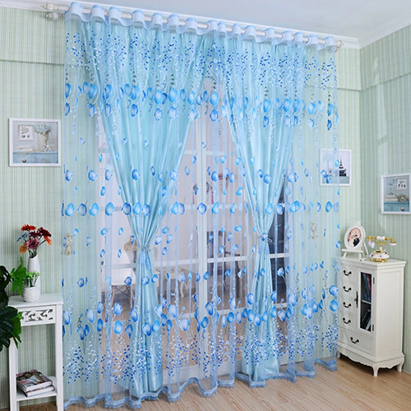 Тюльпан Цветочные тюлевые двери окна просеивания занавески прозрачная драпировка панель шарф valances.