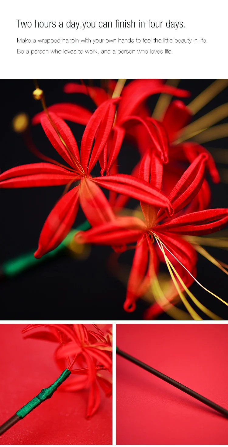 Название: обернутая заколка для волос в виде цветка, набор для самостоятельного изготовления Время производства: около 8 часов (больше терпения будет быстрее) Размер: длина около 23 см ширина около 12 см Посылка включает в себя: достаточная шелковая нить, рулон 0,3 миллиметр медного провода, белый картон, с узором, вырезанным, фотографию готовой заколка для волос, деревянная заколка и крафт-бумага мешок. Нить оборачивается вокруг листьев, а медная проволока обеспечивает прочную поддержку. Общая запутывание действует на шпильку, Украшенная бусинами Красивая заколка с сильным трехмерным эффектом. Примечание: Поскольку международная логистика запрещает прохождение жидких продуктов, мы Вынимаем клей в посылка, пожалуйста, покупайте его на месте, спасибо за понимание.