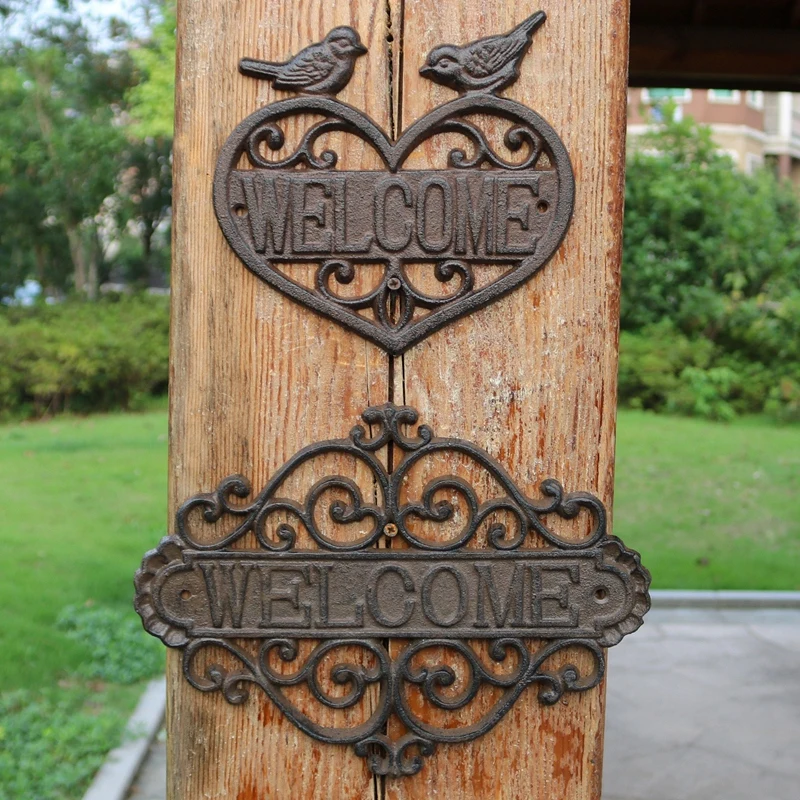 Винтажный полый Настенный декор из чугуна знак Добро пожаловать Европейский ретро домашний садовый декор из металла пластина