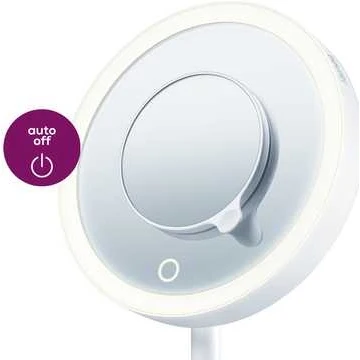 Косметическое зеркало с подсветкой. Бесступенчатая функция затемнения. Большая зеркальная поверхность:17,5 х 17,5 см, диаметр увеличительного зеркала 9,5см