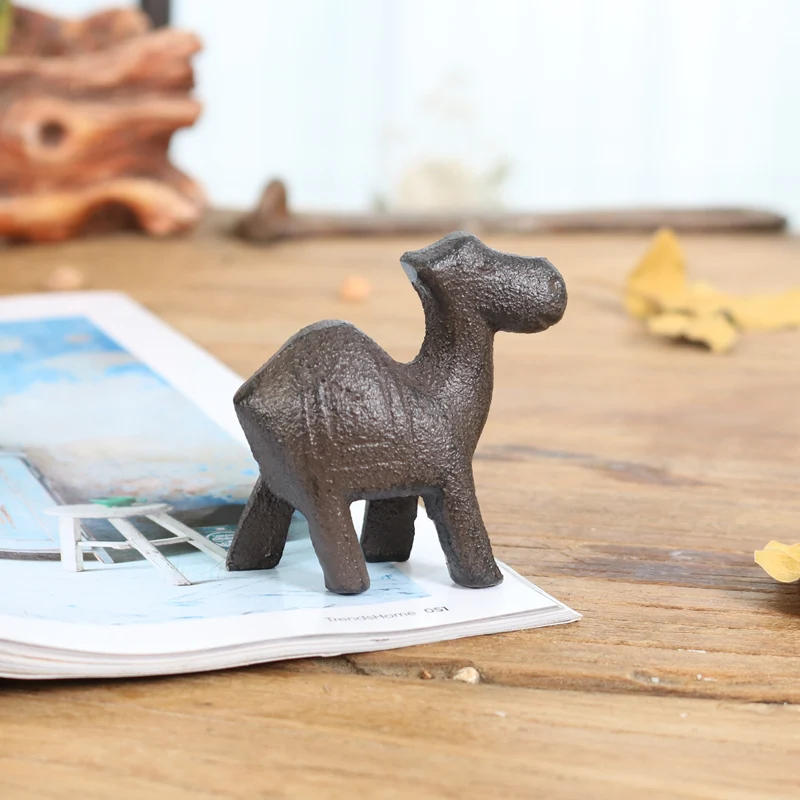 Деревенский мини кошка собака свинья корова верблюд, слон носорог единорог статуэтки чугунная бумага вес дома Настольный Декор статуя животного