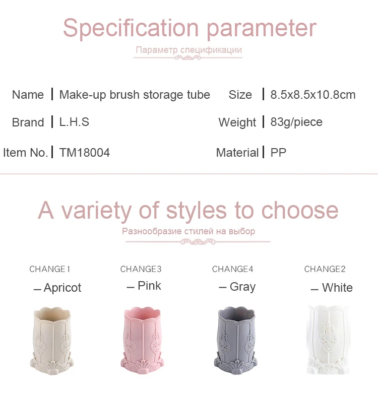Название: трубка для хранения кистей для макияжа Материал: полипропилен Размер: 8,5*8,5*10,8 см Цвет: белый, серый, розовый, абрикосовый