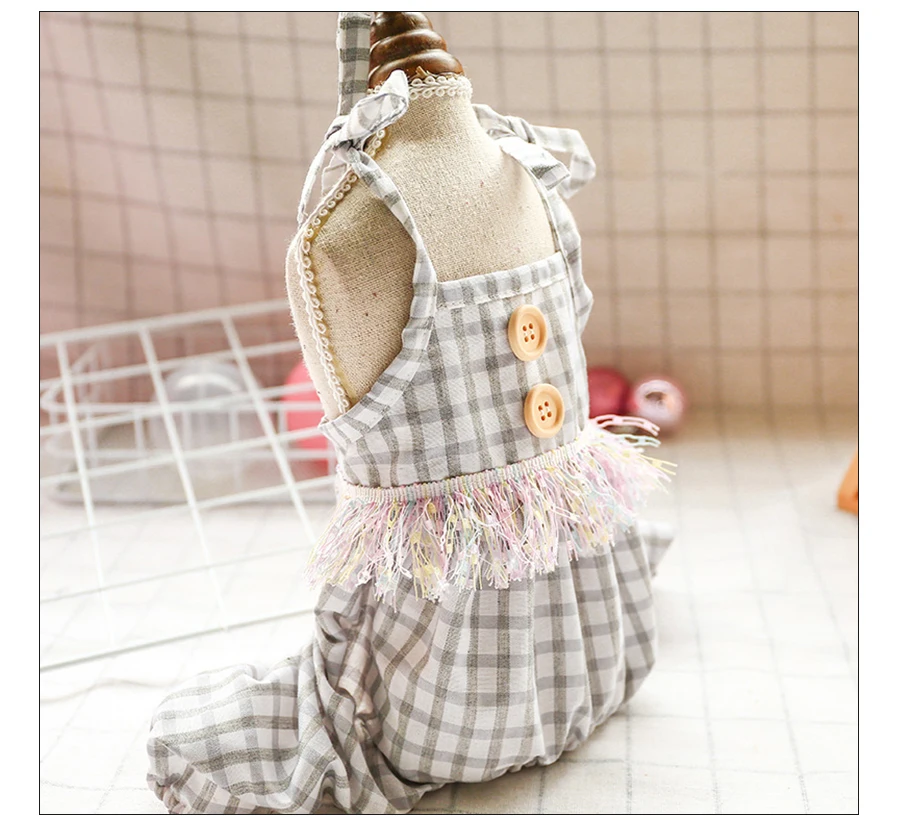 Комбинезон Весна Лето Одежда для собак хлопок плед ремни кистями Pet ткань для кошек для собак чихуахуа милые кнопки слинг Щенок костюмы