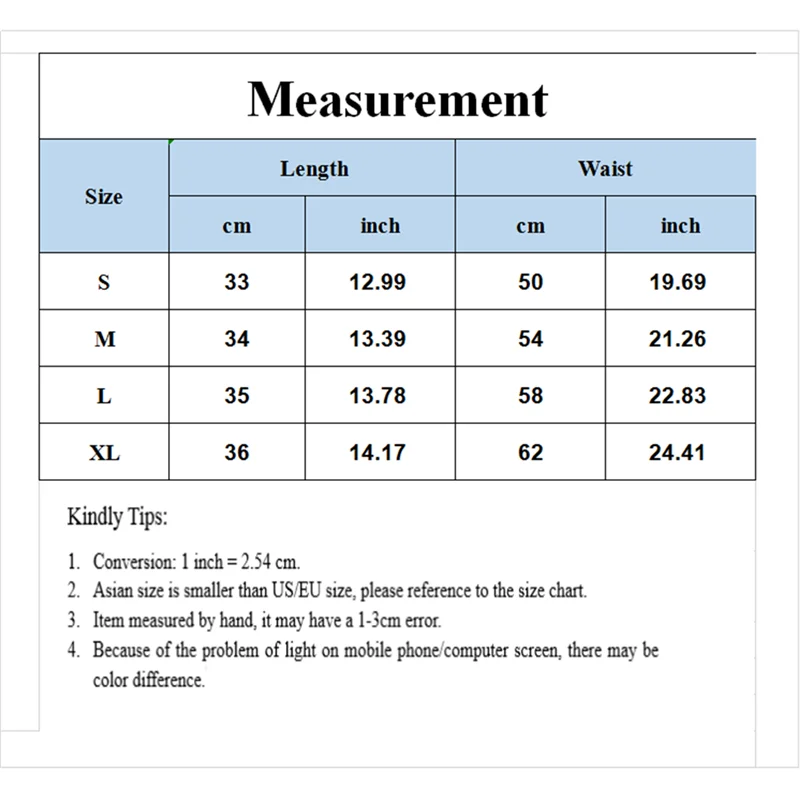 Особенности: 1 см = 0,393 дюйма, 1 дюйм = 2,54 см Размеры Длина Линия талии S33 см50 см М34 см54 см L35 см58 см