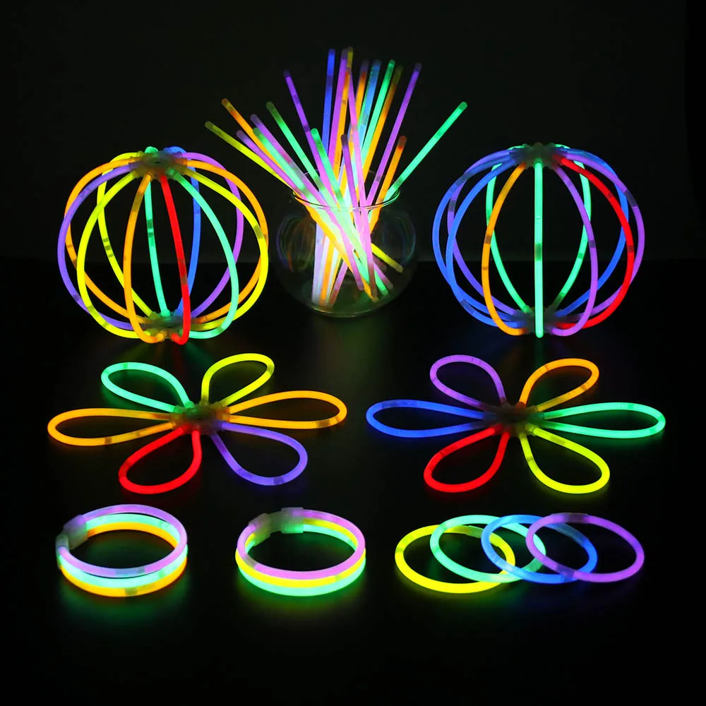 Светящаяся палочка имеет прямой Коннектор 100 шт., шариковый коннектор 6 шт. и бесплатный трехштекерный Коннектор 4 шт. Их можно быстро выдавать и легко надевать. CАунекторы помогают Делать Светящиеся ожерелья и светящиеся браслеты. Развлечение для всех возрастов, от детей до взрослых.