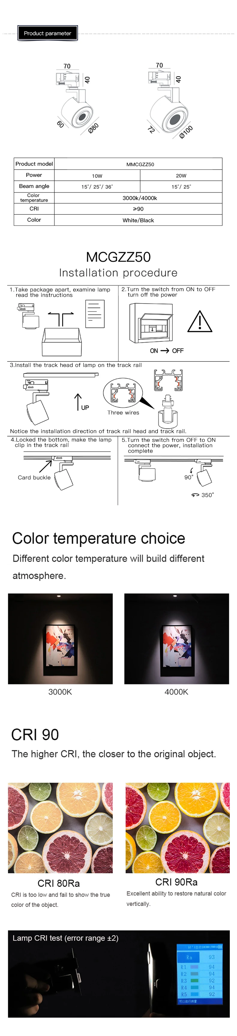 Бренд: MR.XRZ Материал: Алюминий, литый Цвет тела: черный, белый, Тип источника света: СВЕТОДИОД CRI (Цветной индекс рендеринга (Ra 90) близок к ежедневному зрению, который защищает глаза и больше подходит для чтения) Чипсы бренда: CREE чипсы Водитель: Филипс Мощность: 10W, 20W Светящийся поток: 75lm/W Угол луча: 25 градусов, 15 градусов (необходимо отметить или связаться с нами) Температура цвета: Теплый белый (3000K), Натуральный белый (4000K) Гарантийный срок: 2 года Часы жизни: 25 000 часов