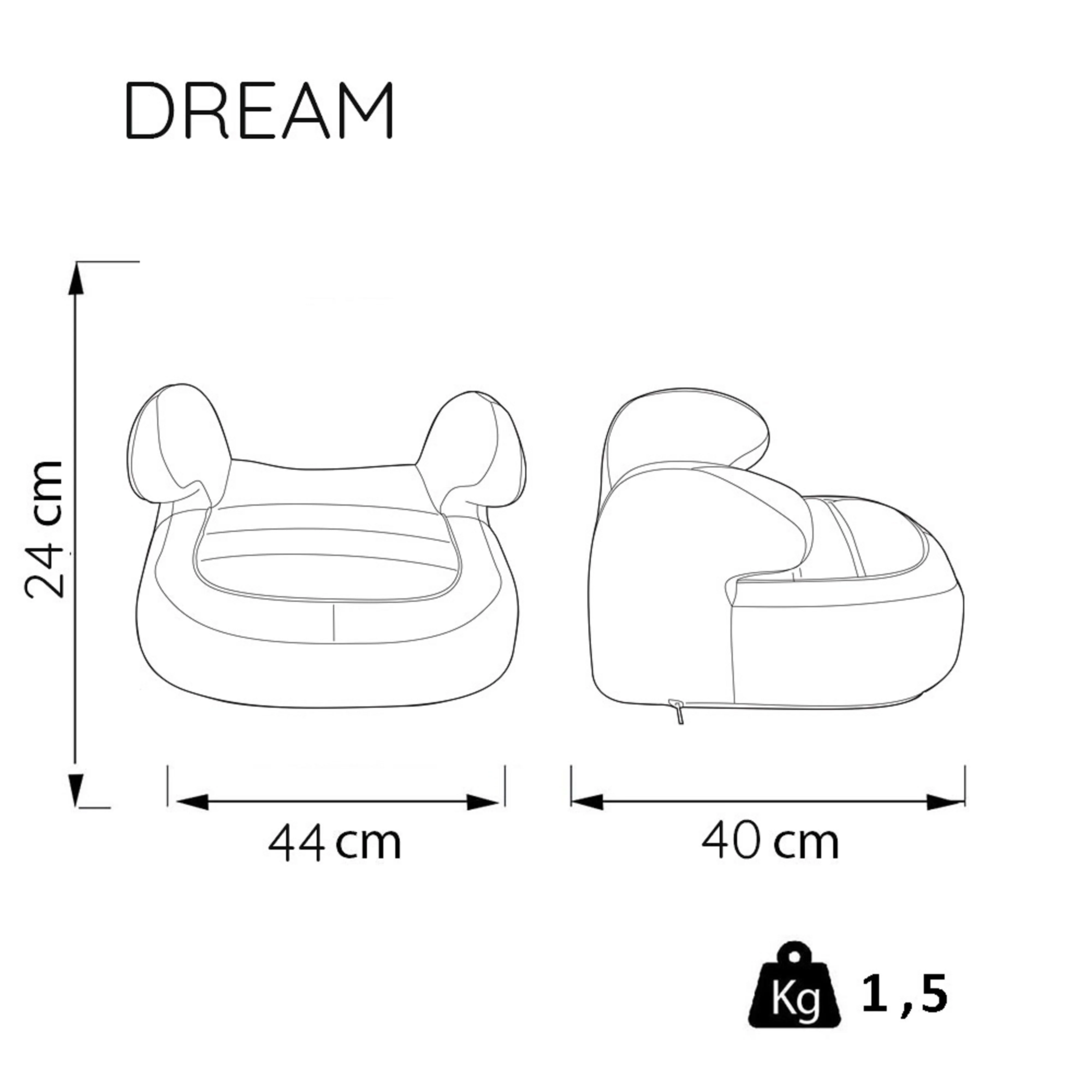 Бустер Nania DREAM - автомобильное удерживающее устройство для детей от 4 до 10 лет, весом от 15 до 36 кг. Ребенок пристегивается вместе с бустером штатными ремнями автомобиля на переднем или заднем сиденье. Бустер компенсирует разницу в росте ребенка и креплением штатного ремня безопасности автомобиля, обеспечивая безопасную посадку при пристегивании. Тканевая обивка бустера снимается и может быть постирана в стиральной машине.