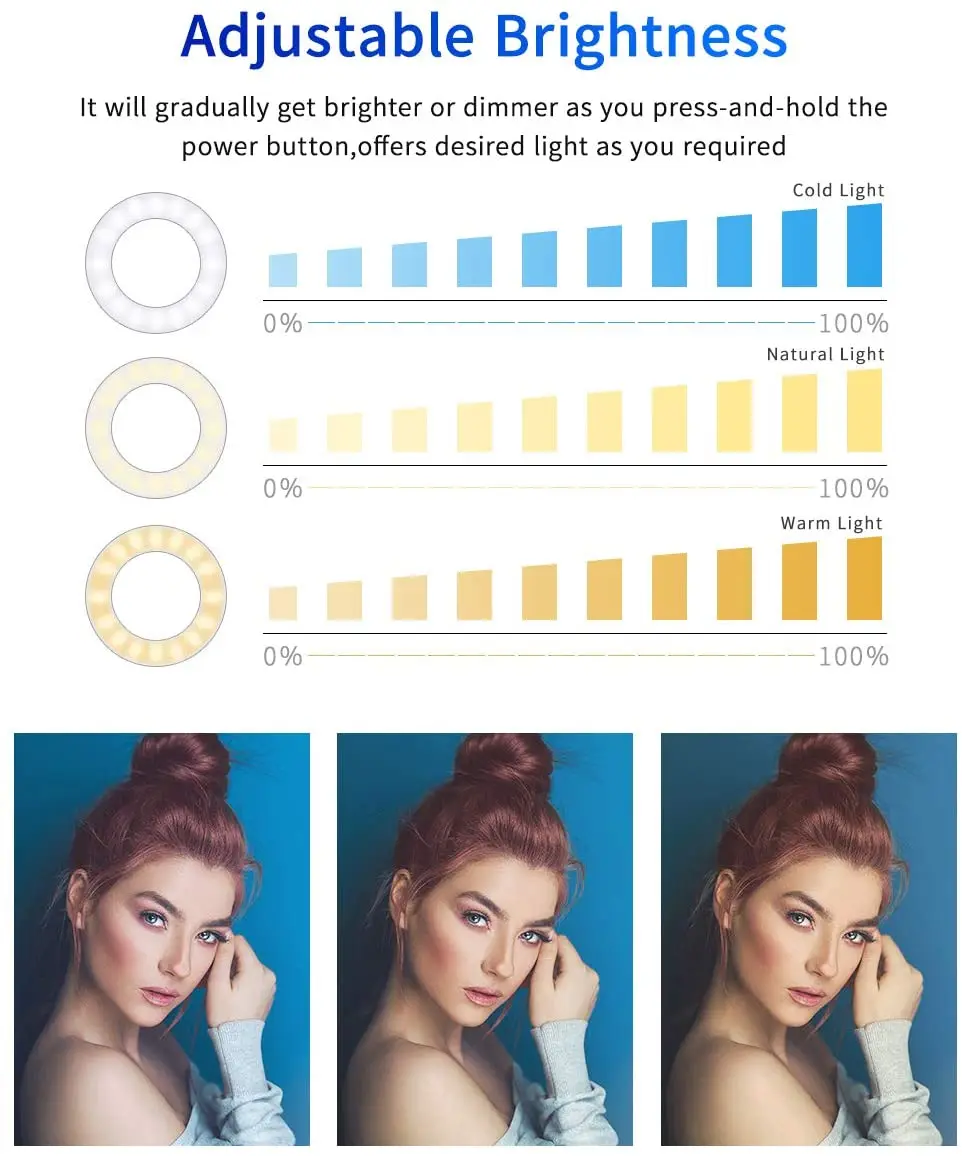 【Dimmable - 3 светильник ing Modes】Compared с других продуктов один светильник режим, этот профессиональный selfie светильник с теплой светильник/натуральный светильник/белый светильник 3 светильник ing режима. В каждом режиме он постепенно становится ярче или тускнеет, когда вы долго нажимаете и удерживаете кнопку питания. Двойным нажатием переключатель будет SOS flash светильник. Светодиодный светильник Selfie ring со встроенным 40 бусинами обеспечивает равномерное и мягкое освещение 3500K-6500K во время съемки, что помогает улучшить и осветить ваше лицо 【 Перезаряжаемый дизайн 】 Встроенная прочная аккумуляторная батарея. Его можно легко заряжать с помощью прилагаемого usb-кабеля без замены аккумулятора. Вы можете зарядить его с портом ноутбука, блоком питания или настенным адаптером и т. д., поддерживая использование во время зарядки. Больше охраны окружающей среды и сэкономить деньги на батареях. 【Компактный и Портативный взять Anywhere】Super светильник вес, карманного формата, наружный диаметр 90 мм/3,54 ”, в то время как внутренний диаметр 56 мм/2,2», клип max составляет 15 мм/0,59", вы можете положить светильник для селфи в карман или сумку и взять его с собой куда угодно. Хороший компаньон для селфи, групповых фотографий, трансляции и записи видео, вы можете получить идеальные селфи в любом месте и в любое время. 【Многократное использование и широкая совместимость 】 вы можете использовать его как заполняющий светильник для селфи, групповых фотографий и фотографий для домашних животных и продуктов питания. Используйте его с камерой, записывайте счастливые моменты в жизни. Или вы также можете использовать его как светильник для макияжа, фонарь, аварийный светильник и многое другое. Наш кольцевой светильник, совместимый с большинством смартфонов, планшетов, ноутбуков, гуманизированных силиконовых подушек на кольцевой светильник, позволяет прочно закрепить его на мобильный телефон и защитить от царапин, забота о вашем устройстве. 【Нет риска покупки 】мы стремимся предоставить клиентам высококачественный светодиодный светильник-кольцо и приятный опыт покупок. Если вы не удовлетворены этим кольцом для селфи-светильник по какой-либо причине или столкнулись с какими-либо проблемами, пожалуйста, свяжитесь с нами напрямую, мы гарантируем замену или полный возврат средств. Как связаться с нами? Пожалуйста, перейдите на страницу подробностей заказа Amazon «order»-«sold by»-«contact seller».