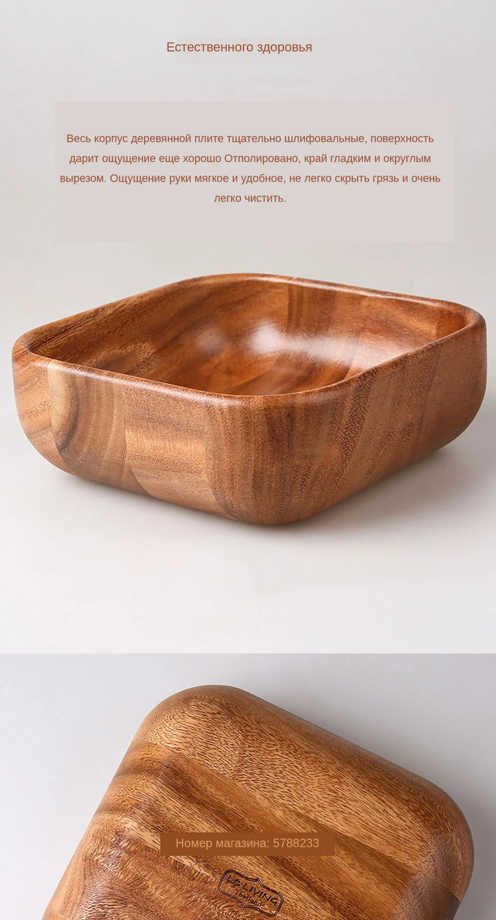 Товар: миска для риса Материал: дерево акации Размер: Маленький: 14х14х5, 5 см Средняя: 18x18x6.5см Большой: 23х23х6, 5 см Цвет: коричневый Обработка поверхности: пищевое масло Красиво оформленный с учетом Вашей кухни: Изготовлен из устойчивой, экологически чистой и прочной акации. Эта древесина Антимикробная, сверхпрочная и визуально потрясающая. Без рисунков, Без окрашивания. Ваши гости будут впечатлены видом и ощущением этой чаши. Каждая деревянная посуда изготовлена из разных частей дерева. Таким образом, каждый элемент является уникальным произведением искусства и имеет различные зерна/цвет/вес от других. Дизайн подсветки: Поверхность Тонкая полировка Край мягкий и гладкий Защита от падения и ожогов